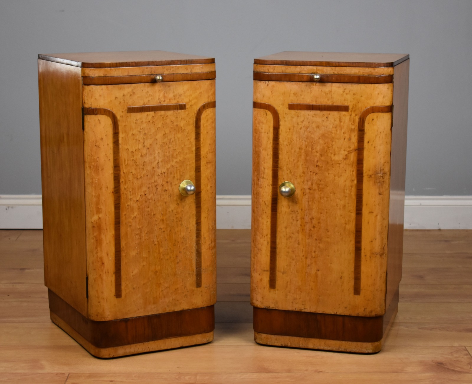 Pair of Art Deco Birdseye Maple Bedside Cupboards