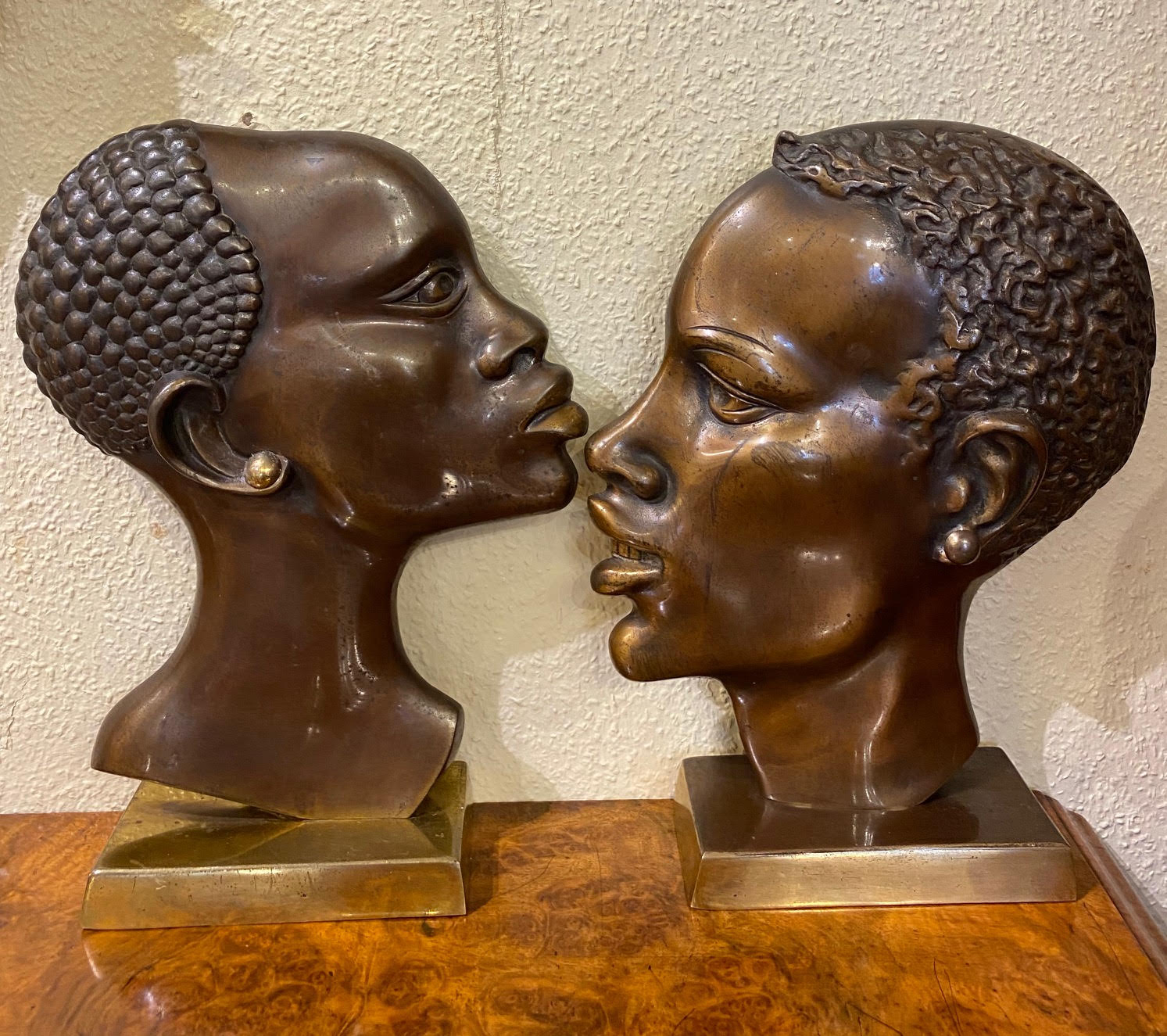 Pair of Art Deco Bronze Profile Studies of Negro Heads