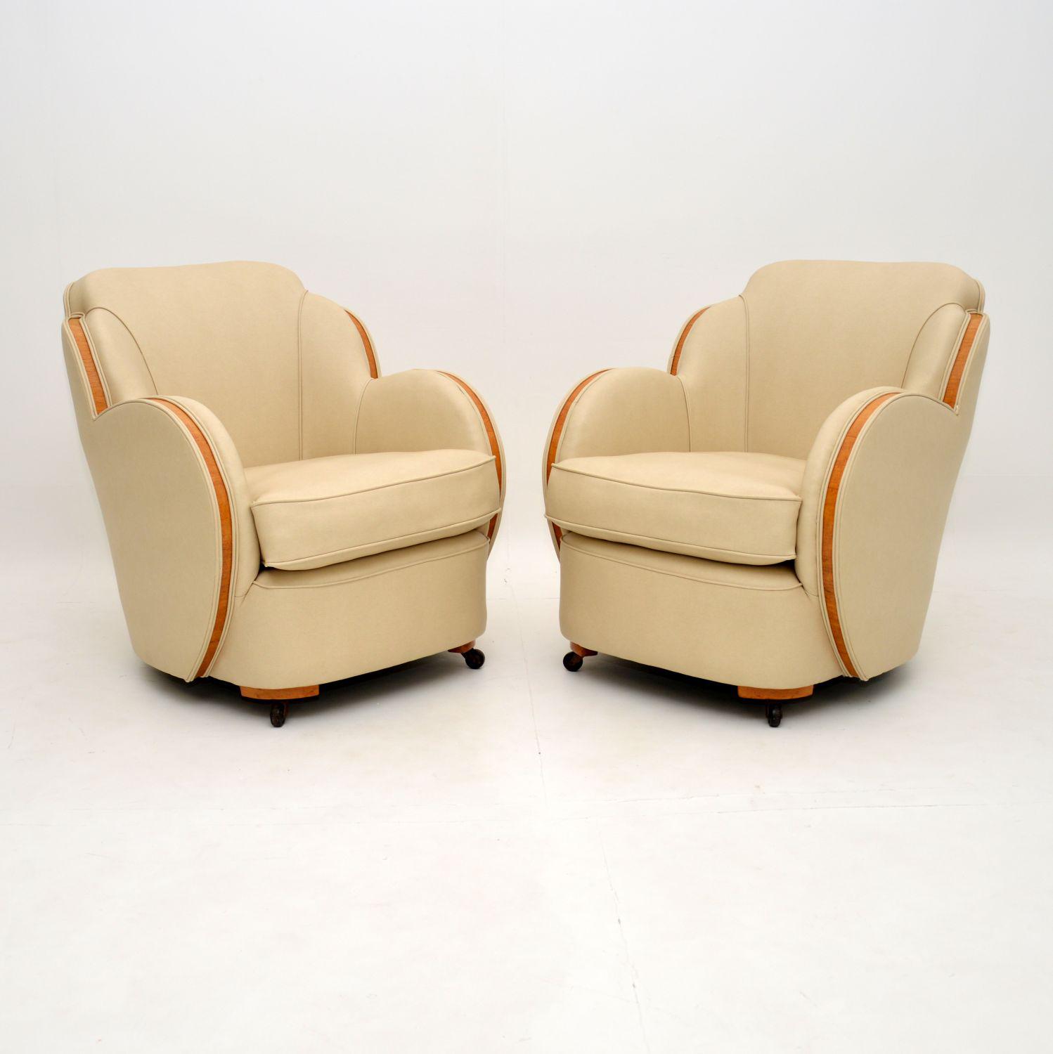 Pair of Art Deco Burr Maple Cloud Back Armchairs by Epstein