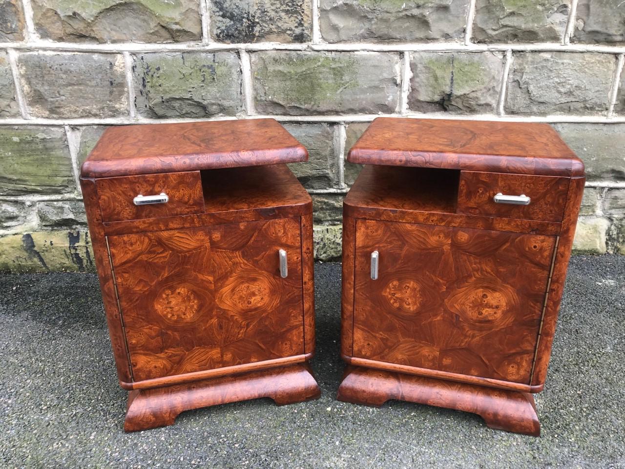 Pair of Art Deco Burr Walnut Bedside Cabinets