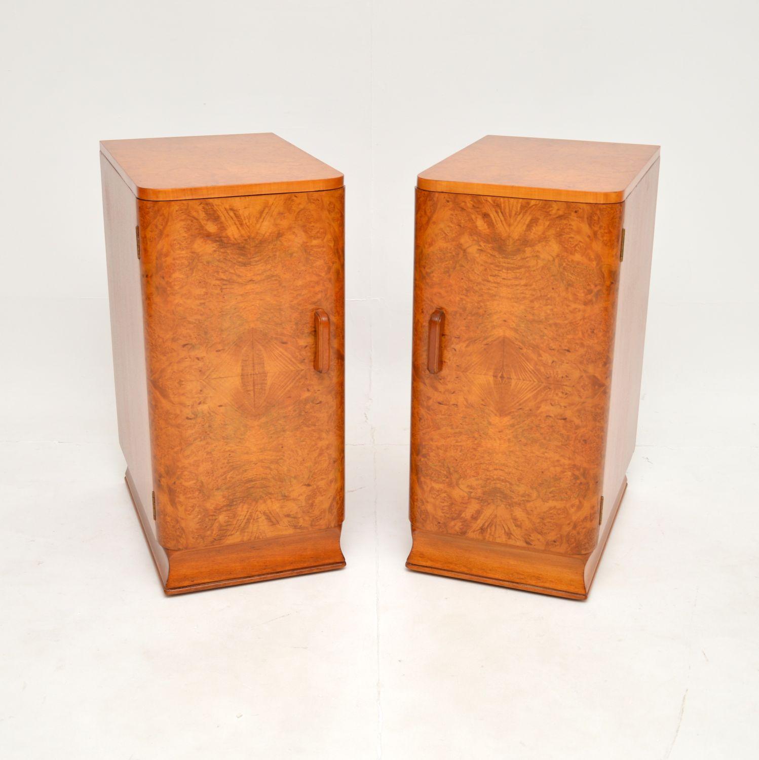Pair of Art Deco Burr Walnut Bedside Cabinets