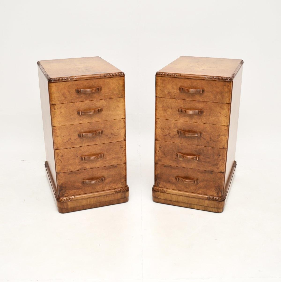 Pair of Art Deco Burr Walnut Bedside Chests