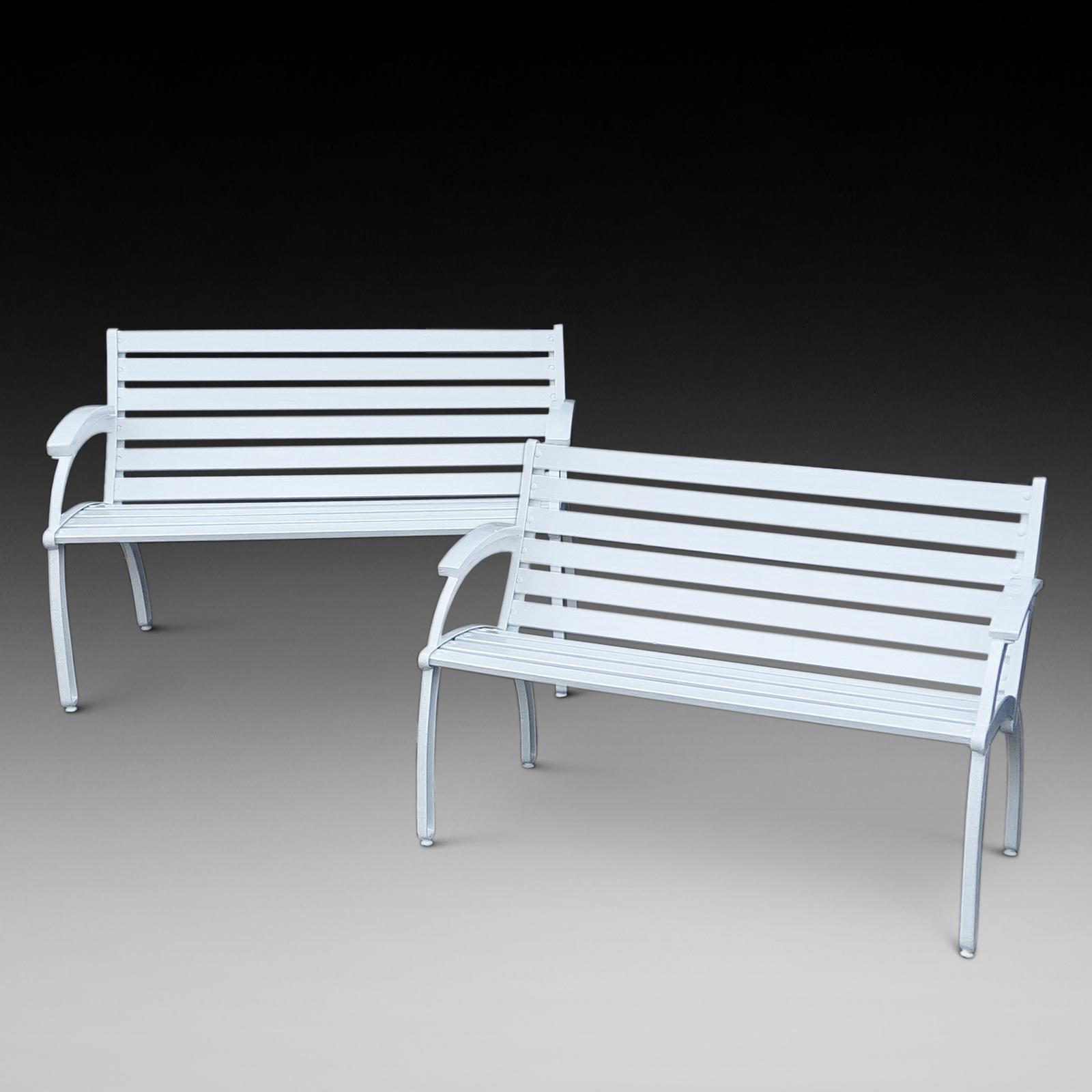 Pair of Art Deco Cast Iron Framed Garden Benches
