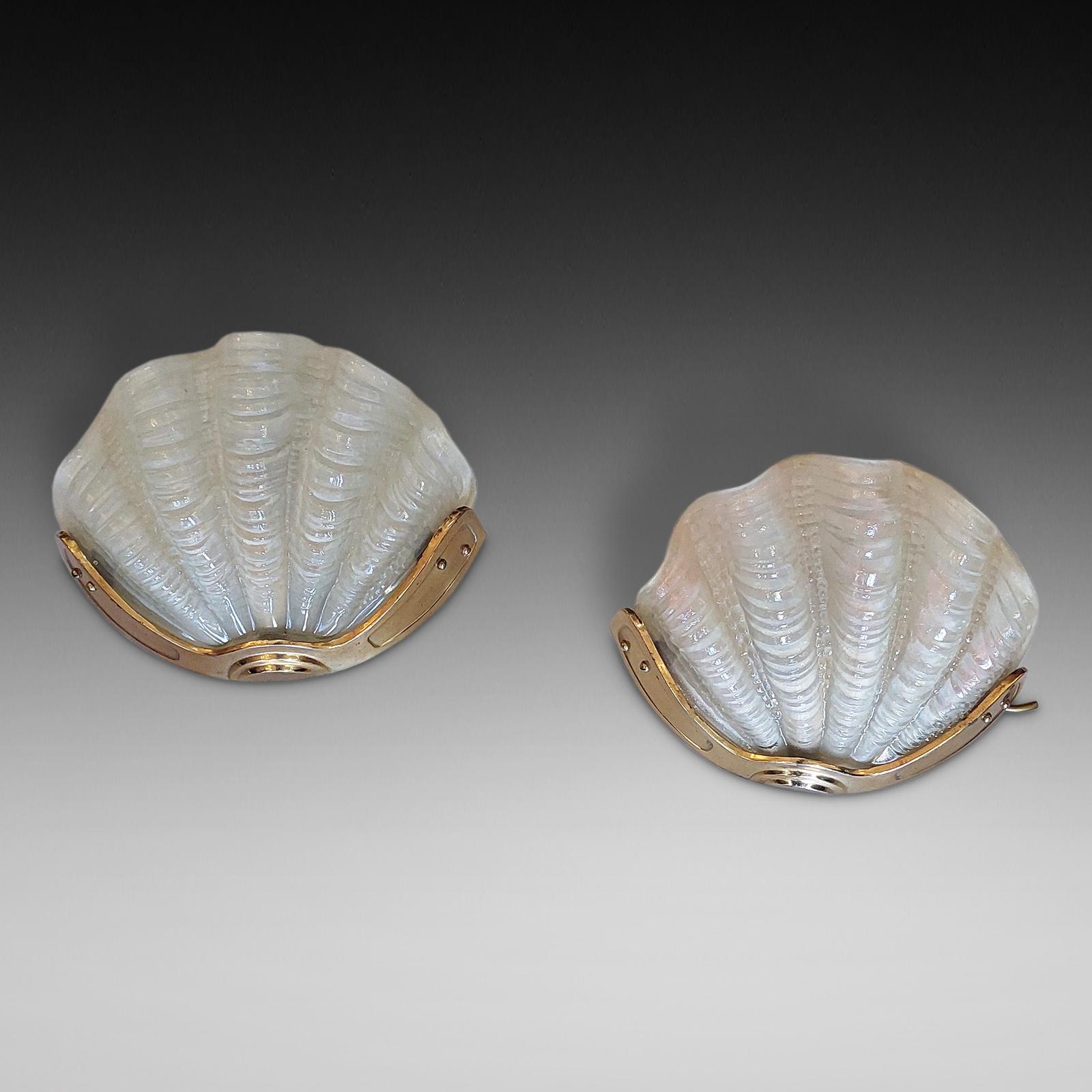 Pair of Art Deco Clam Shell Frosted Glass Wall Lamps