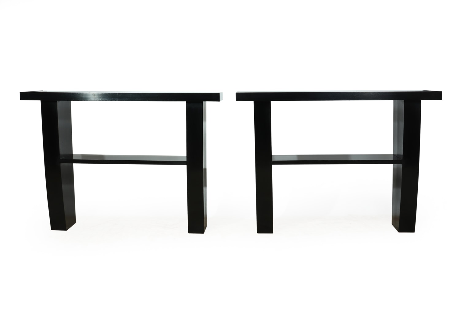 Pair of Art Deco Console Tables in Piano Black Lacquer