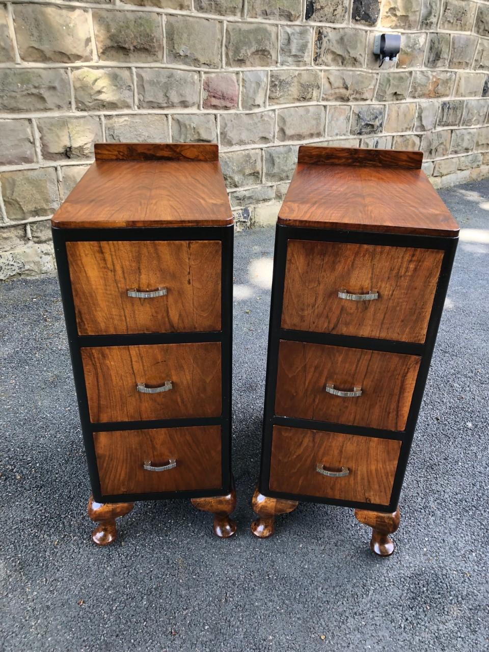 Pair of Art Deco Ebonised Walnut Bedside Chests