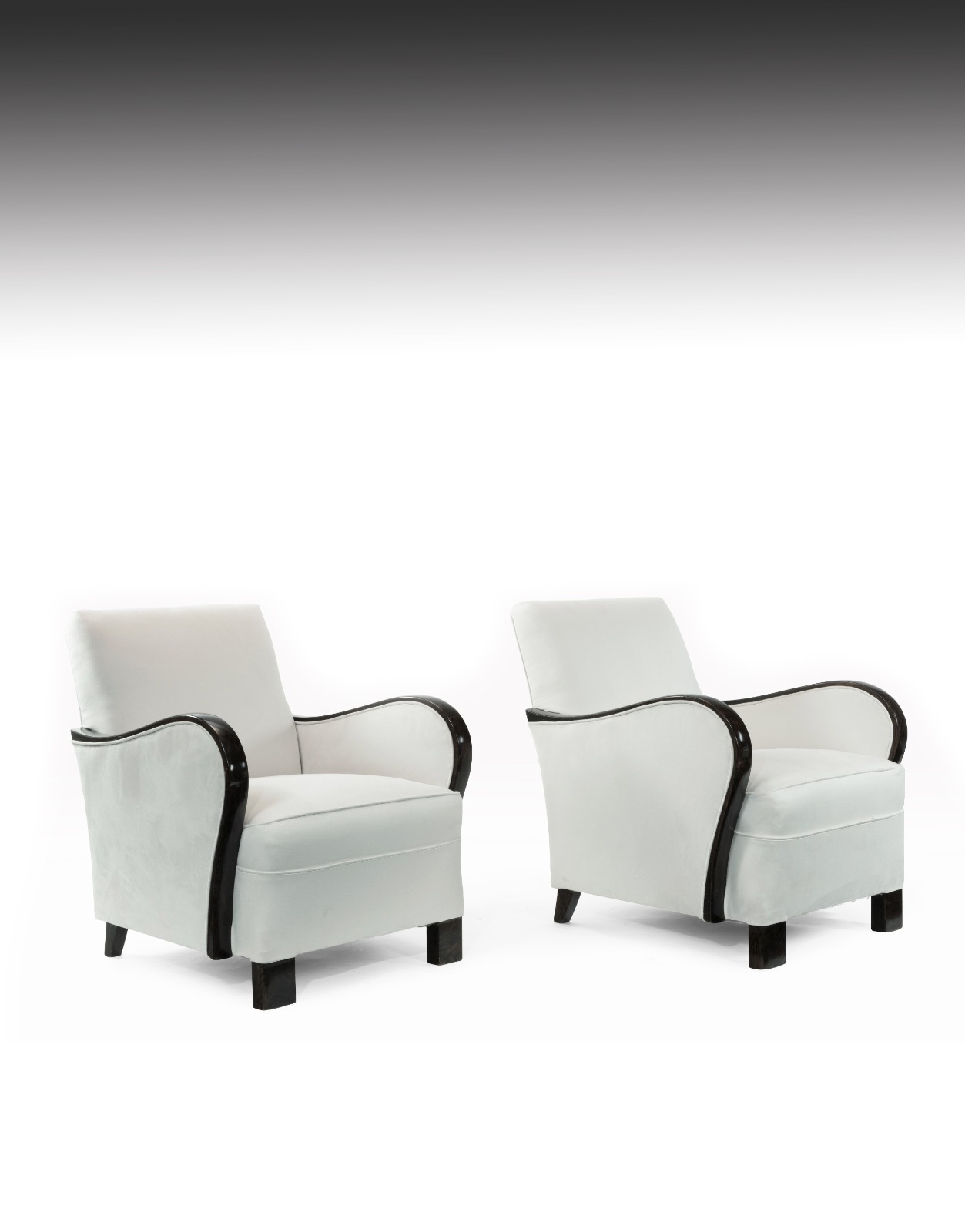 Pair of Art Deco Faux Rosewood & Suede Armchairs c.1920