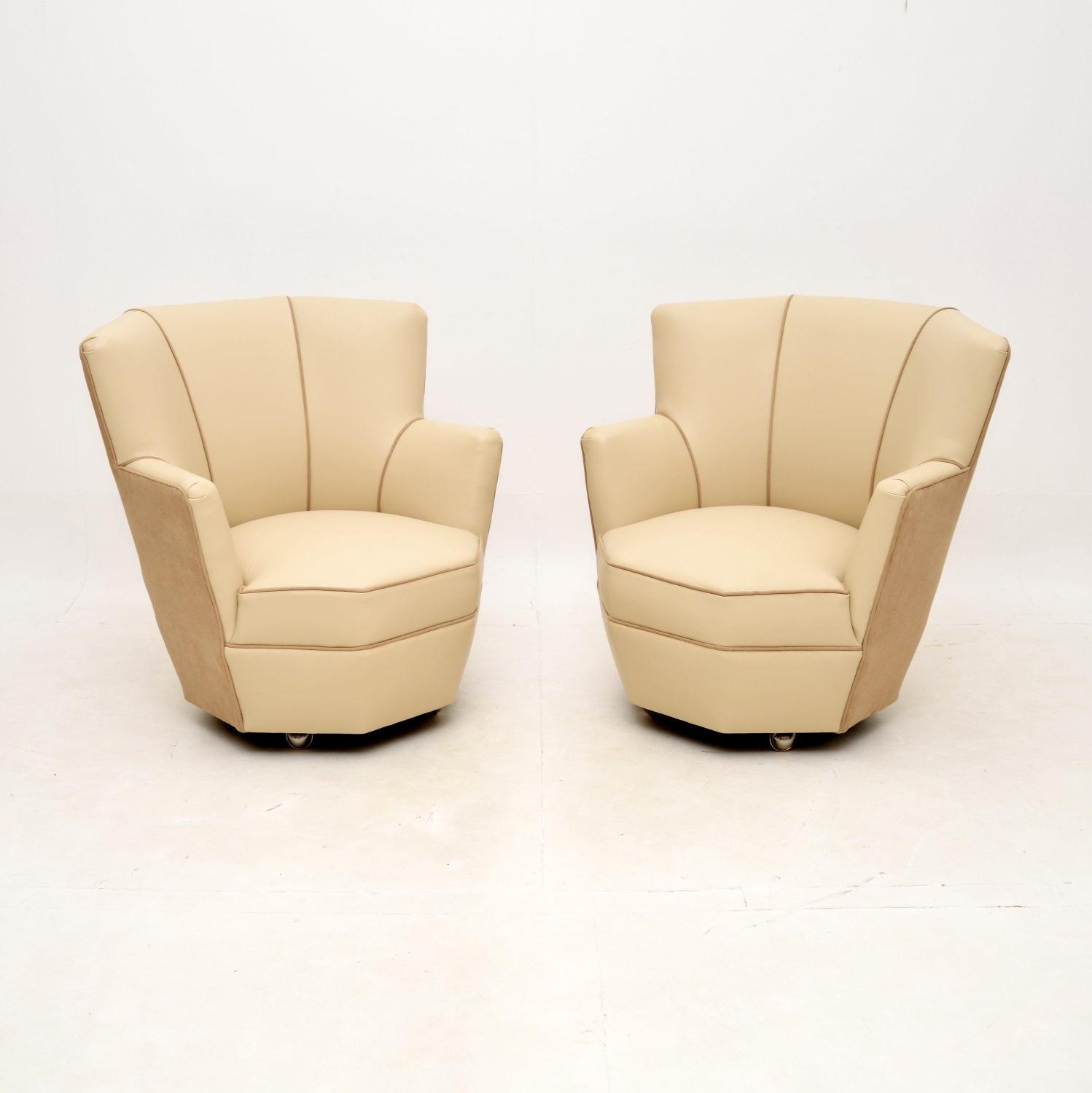 Pair of Art Deco Leather & Suede Cocktail Armchairs