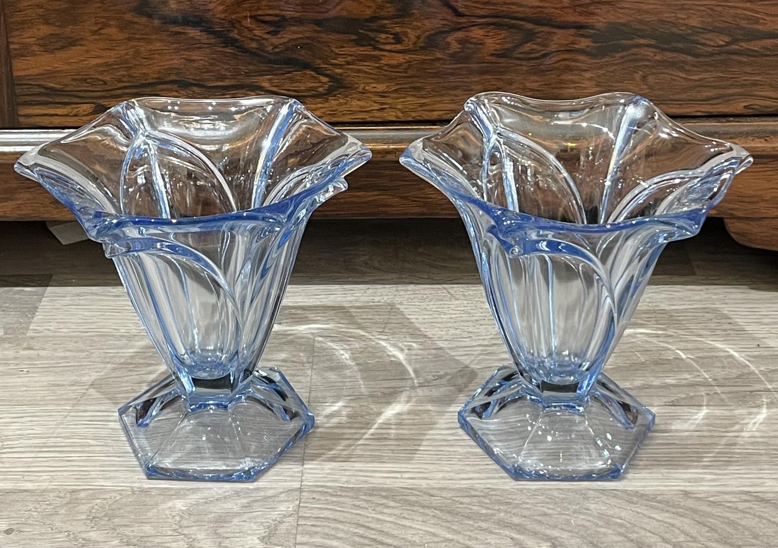 Pair Of Art Deco Pale Blue Glass Vase By Stolzle