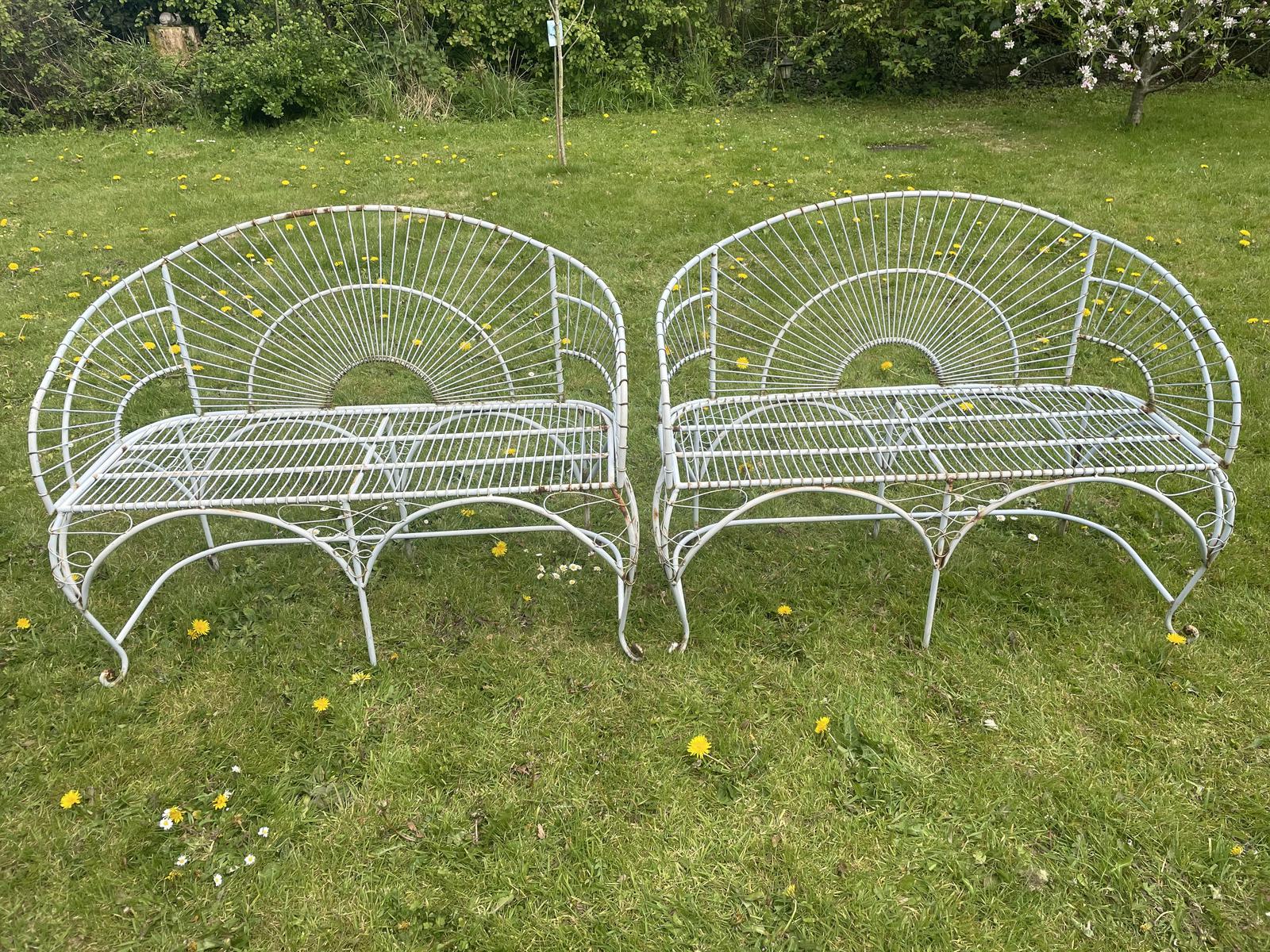 Pair of Art Deco Style Peacock Design Garden Curved Benches