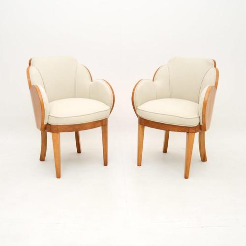 Pair of Swedish Art Deco Armchairs in Satin Birch