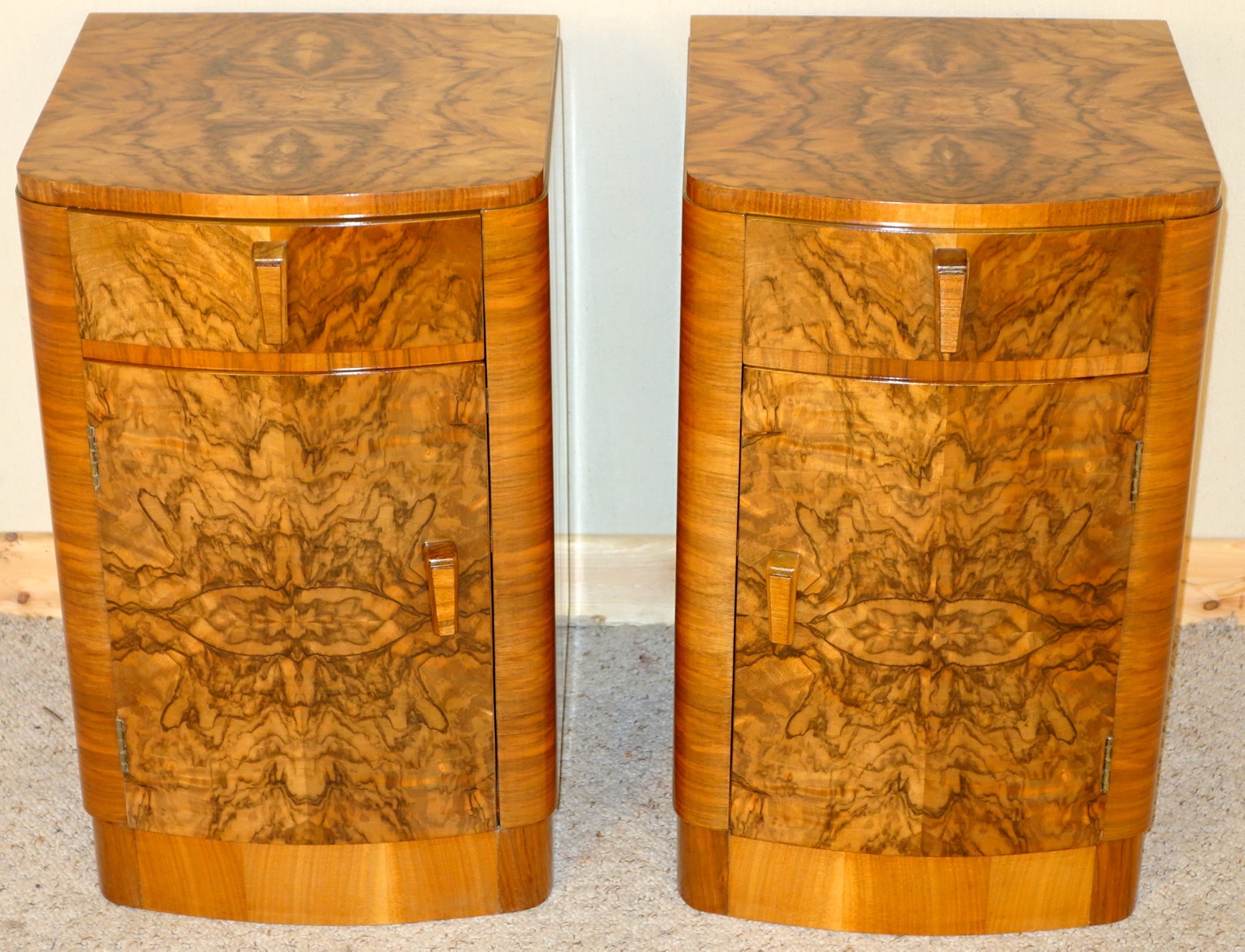 Pair of Art Deco Walnut Bedside Cabinets / Cupboards c.1930