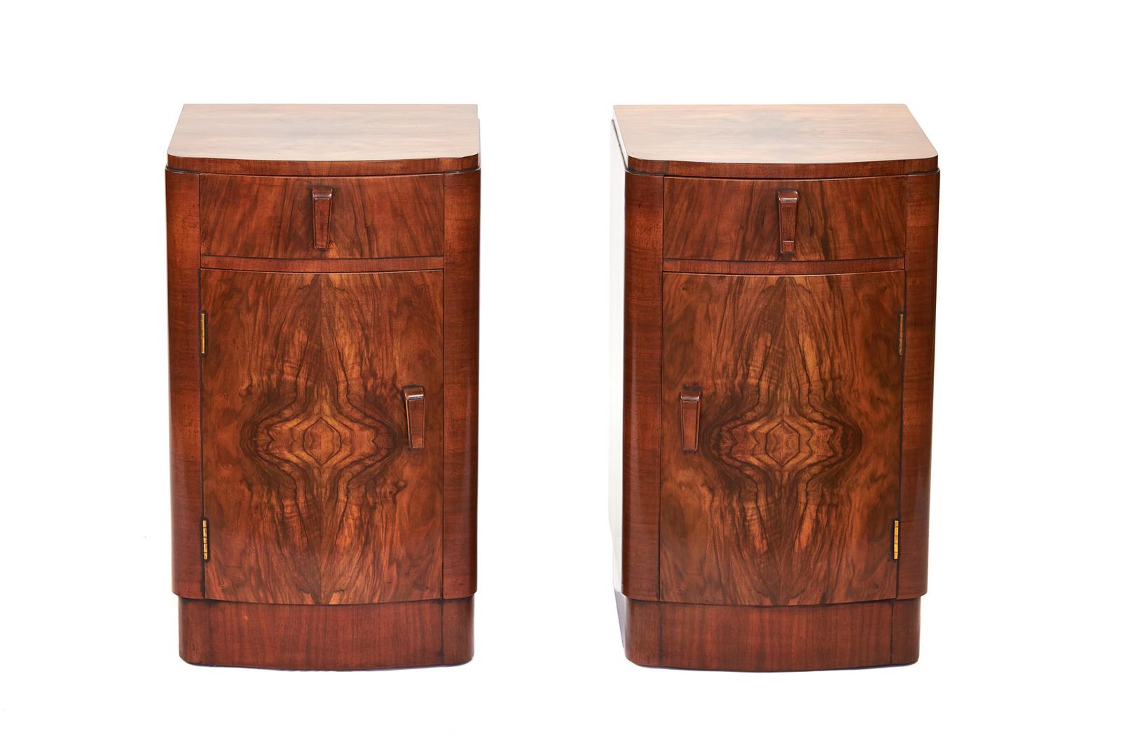Pair of Art Deco Walnut Bedside Cupboards c.1930
