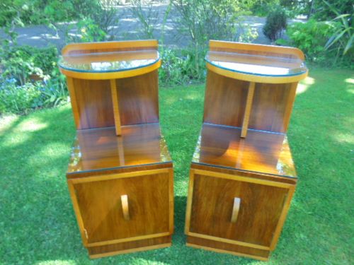 Pair of Art Deco Walnut Bedside Tables / Lamp Tables c.1930