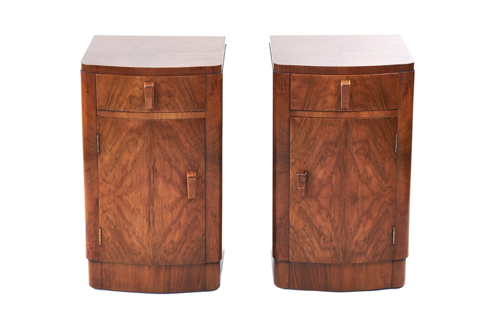 Pair of Art Deco Walnut Bowfront Bedside Cupboards