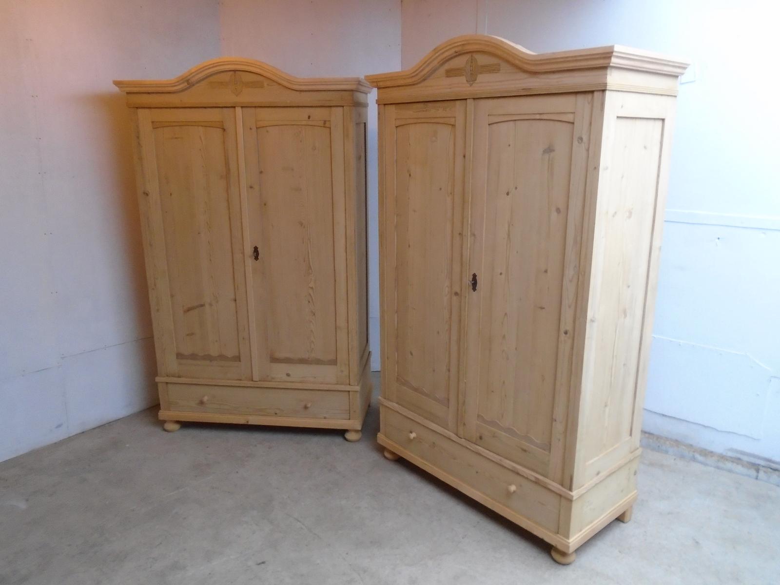 Pair of Art Nouveau Antique Pine Knockdown Wardrobes to wax / paint
