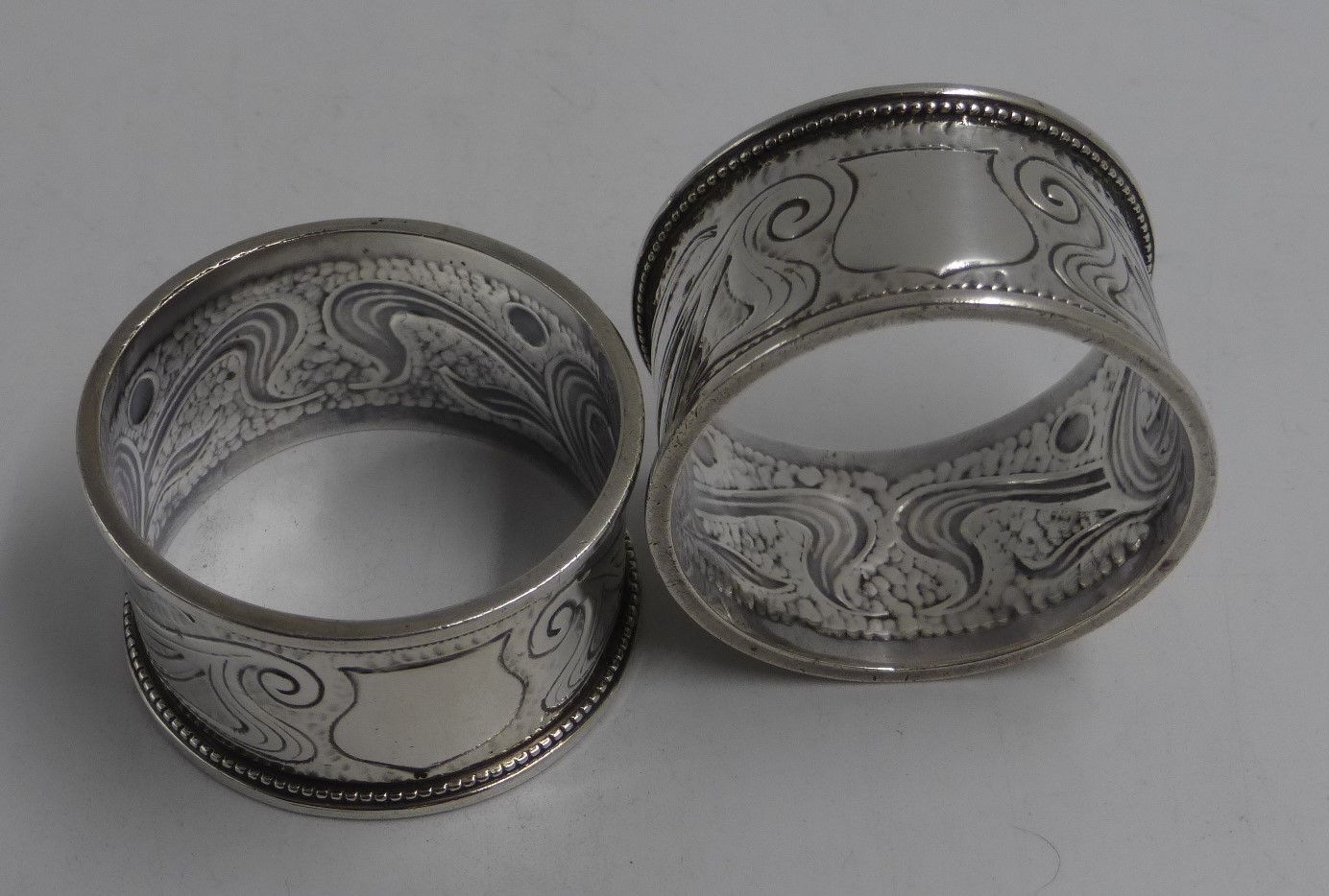 Pair of Art Nouveau Silver Napkin Rings. Birmingham 1902