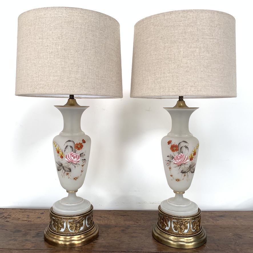 Pair of Art Nouveau Style Frosted Glass Lamps 1920s (1 of 1)