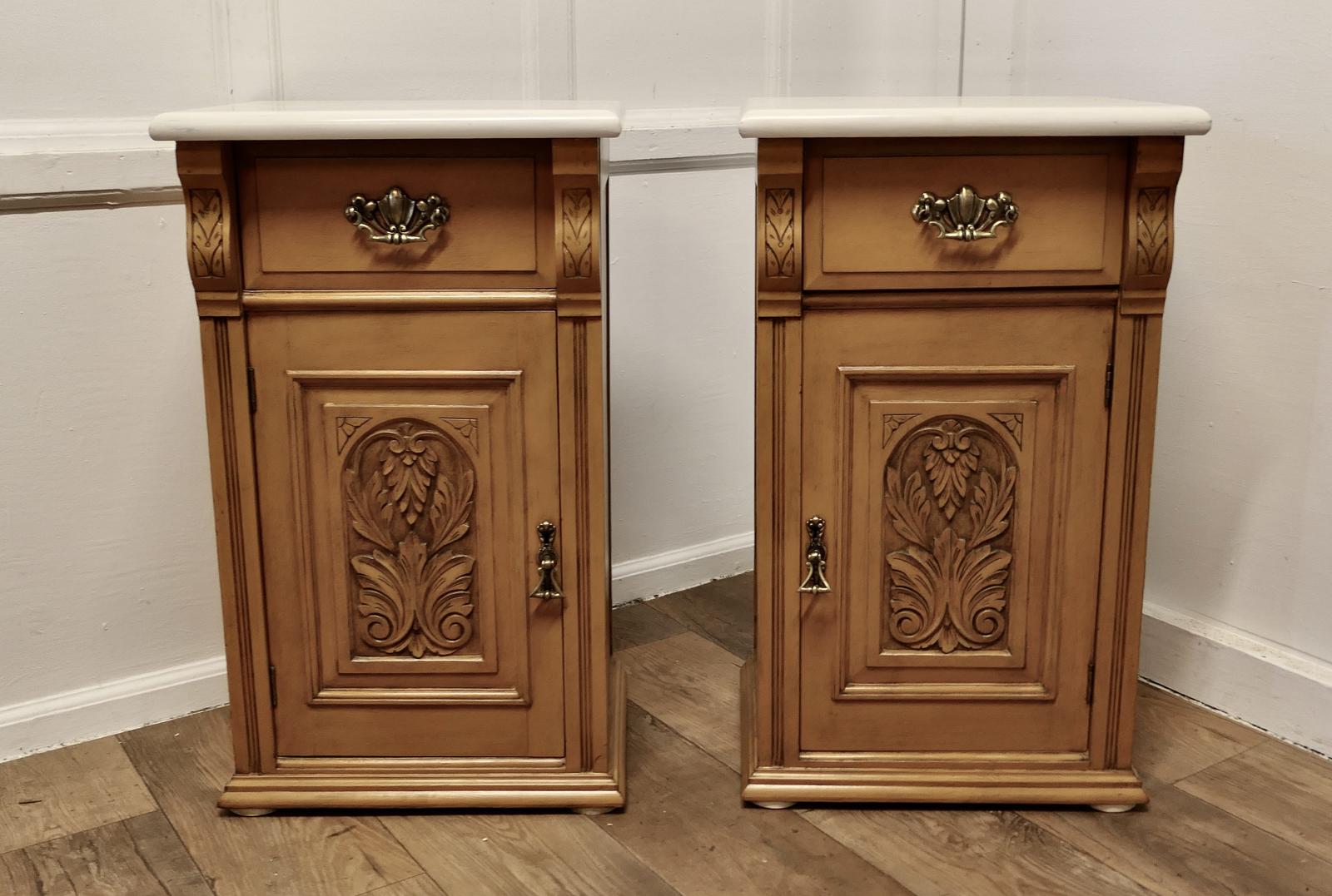 Pair of Arts & Crafts Carved Bedside Cupboards