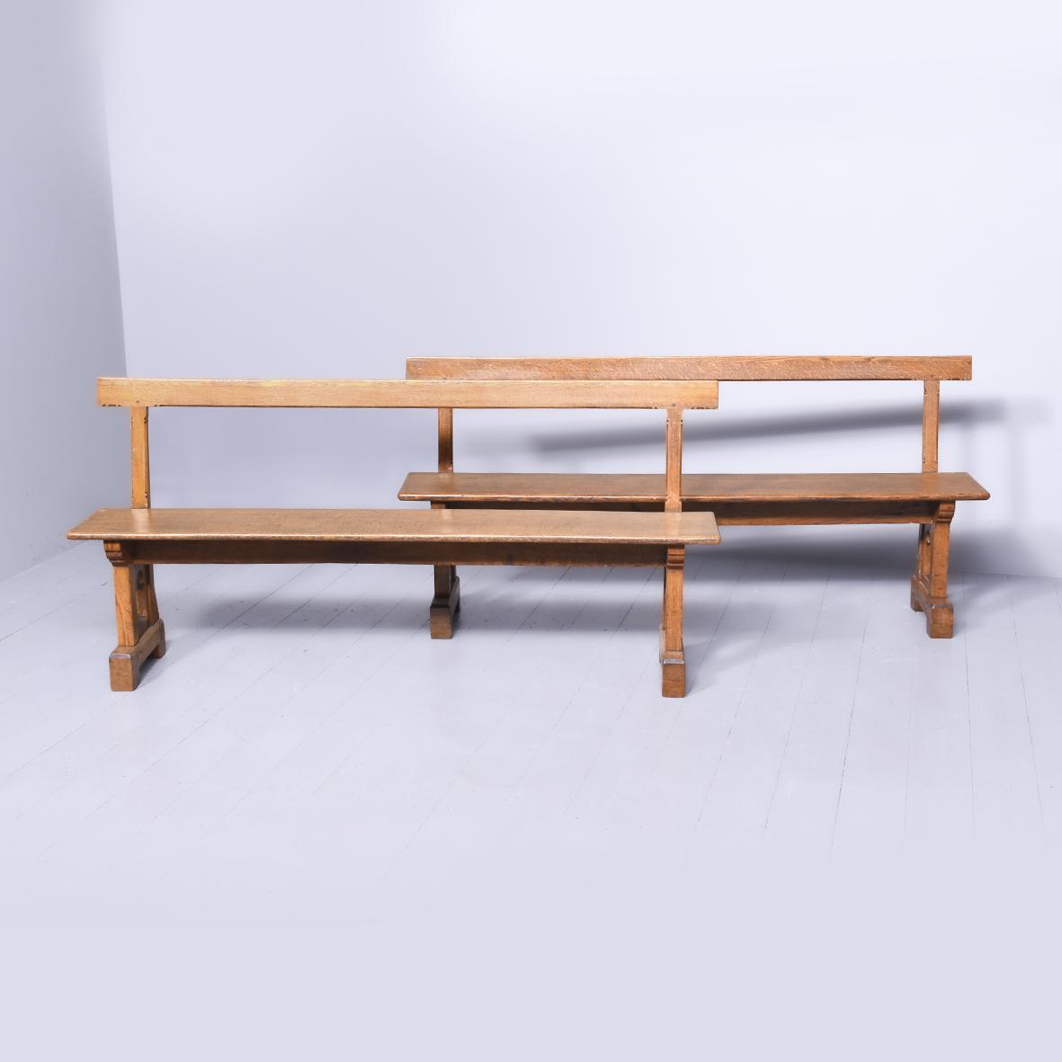 Pair of Arts & Crafts Influenced Figured Oak Benches (1 of 18)