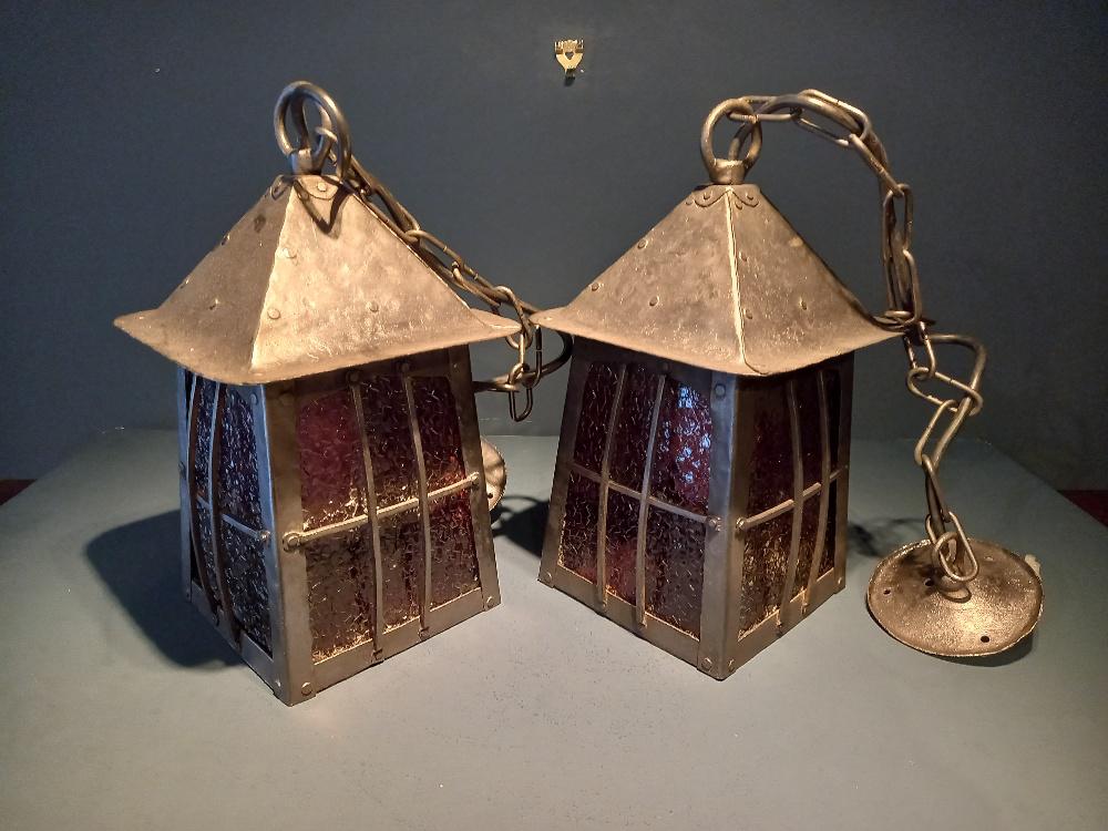 Pair of Arts & Crafts Polished Steel Hanging Lanterns