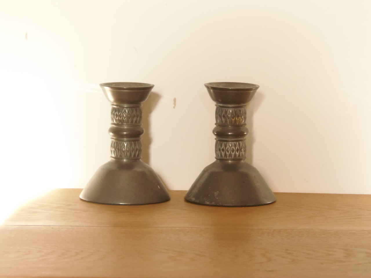 Pair of Arts & Crafts Style Pewter Candle Holders C.1950