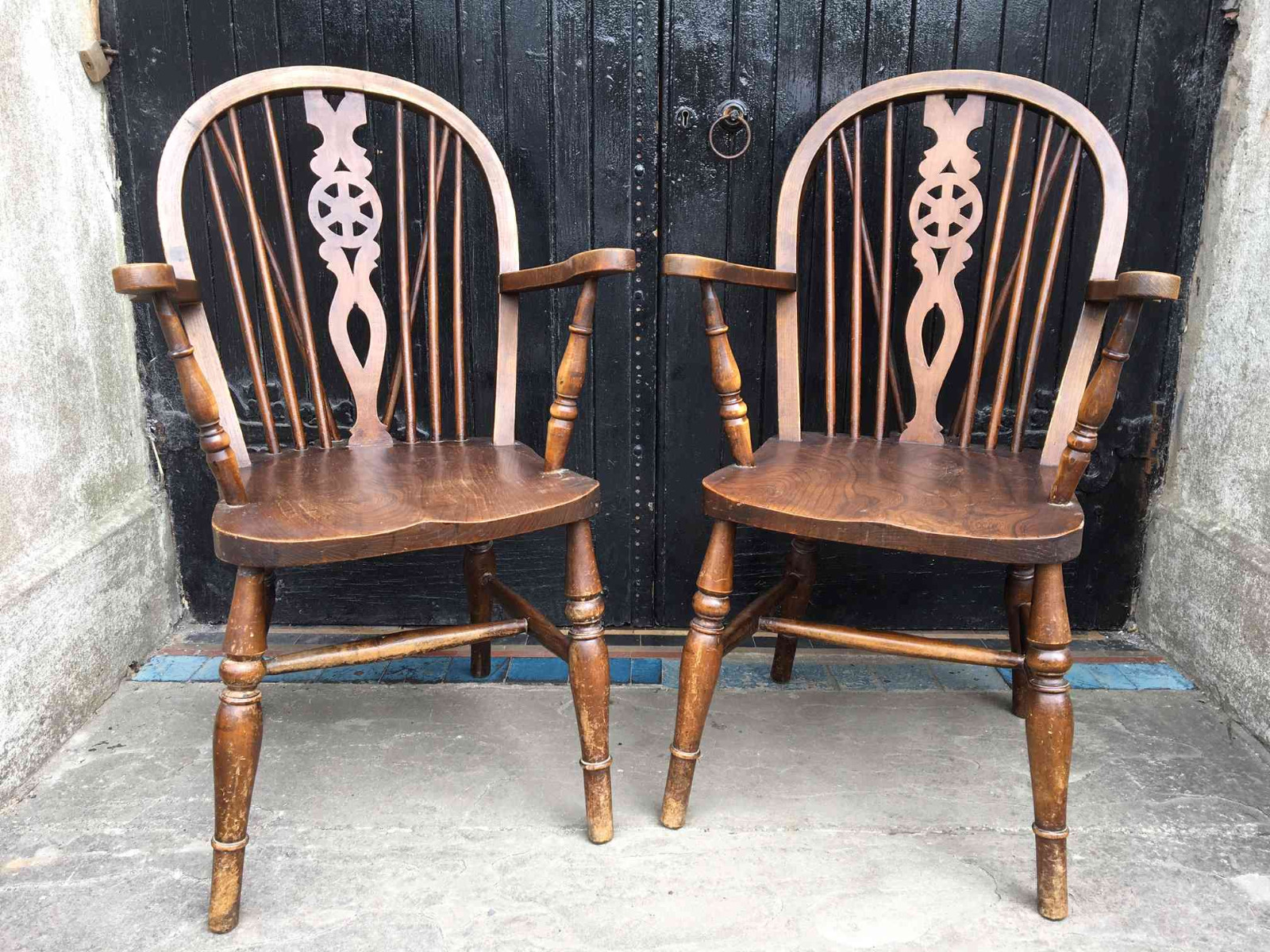 Pair of Ash & Elm Wheelback Armchairs c.1900 (1 of 1)