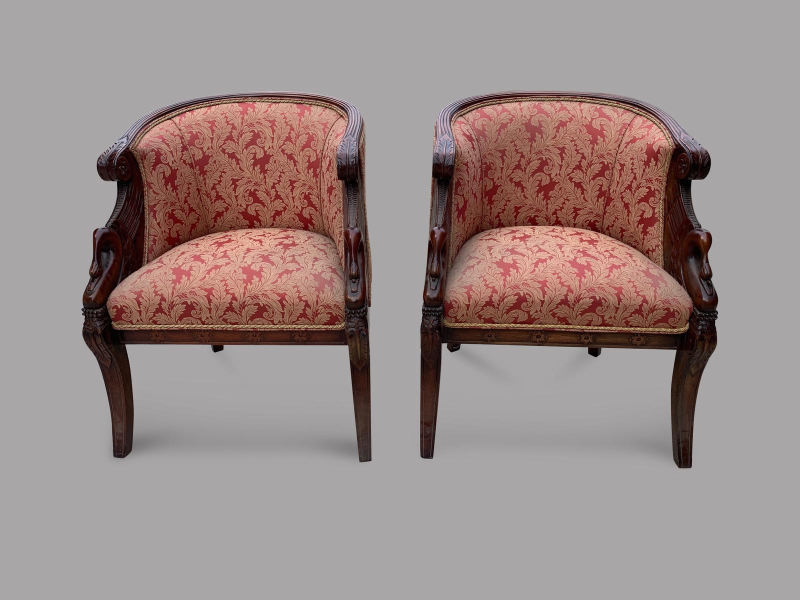 Pair of Attractive Carved Mahogany Tub Shaped Chairs