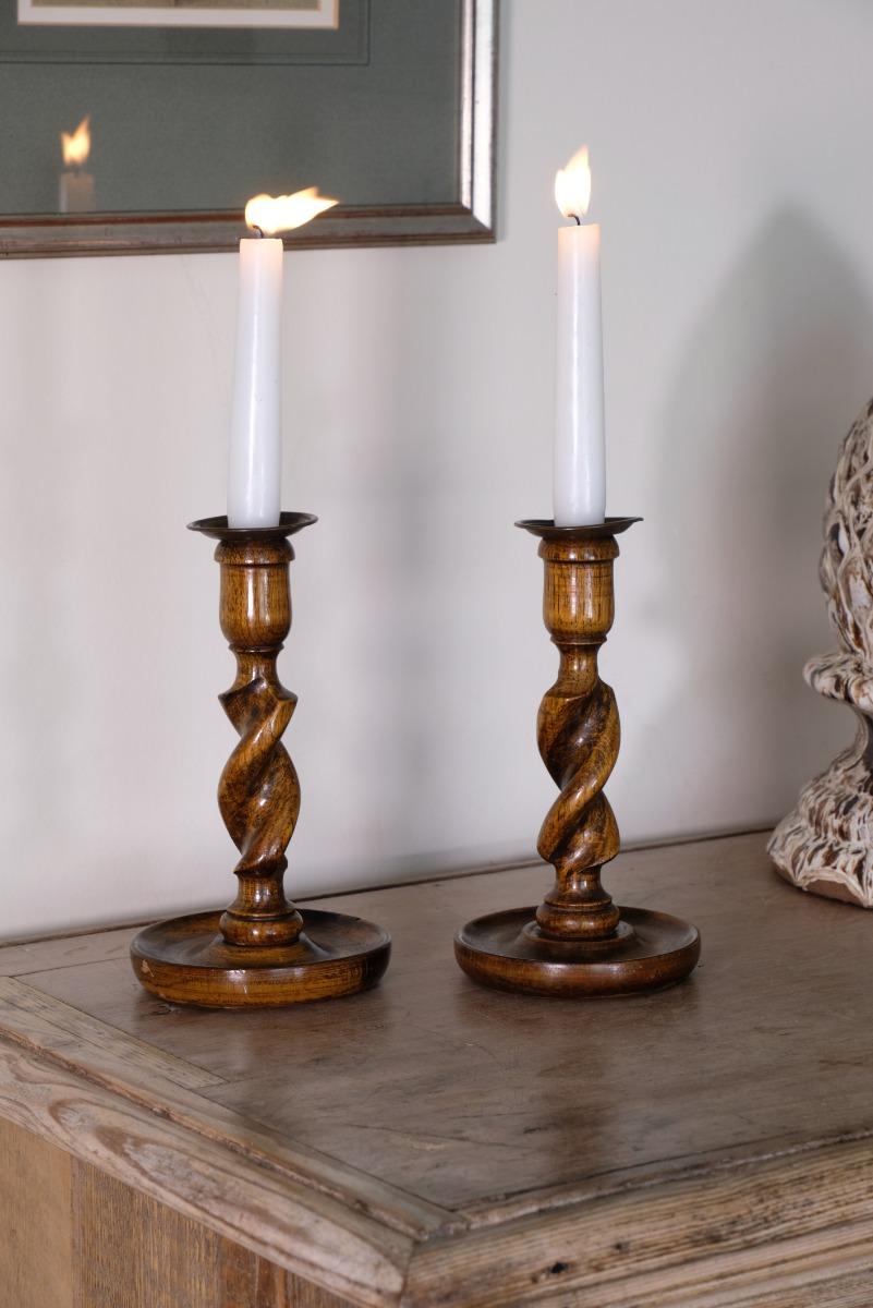 Pair of Barley Twist Candle Stands with Brass Sconces