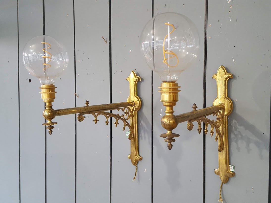 Pair of Beautiful Large Brass Wall Lights C.1890