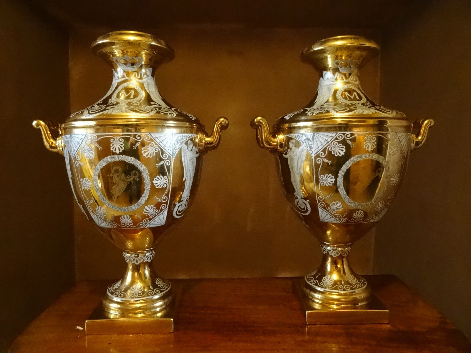 Pair of Beautiful Large Continental Ornate Gold Vases C.1900