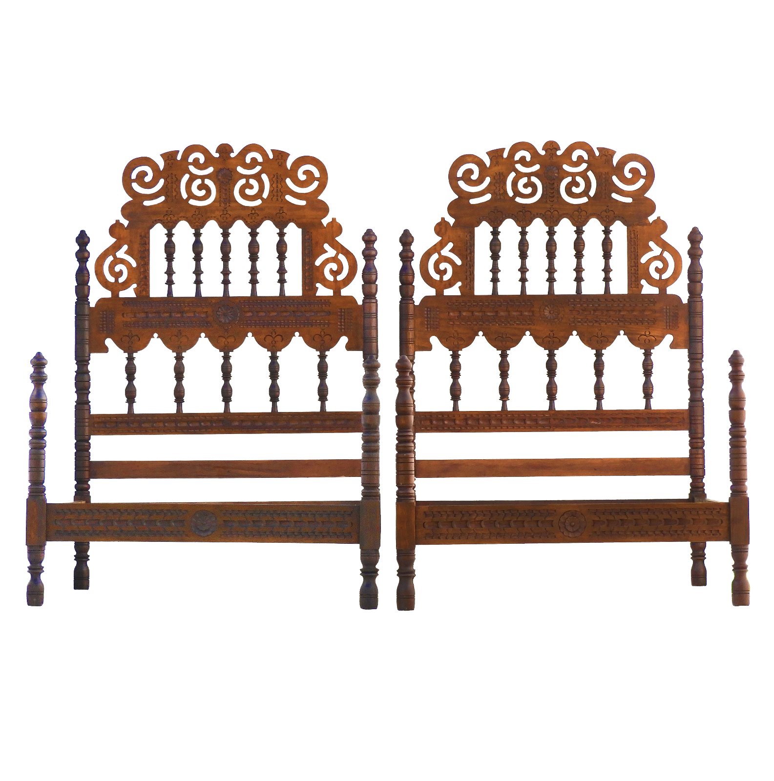 Pair of Beds Iberian Folk Art Twin Singles or Super King Early 20th Century