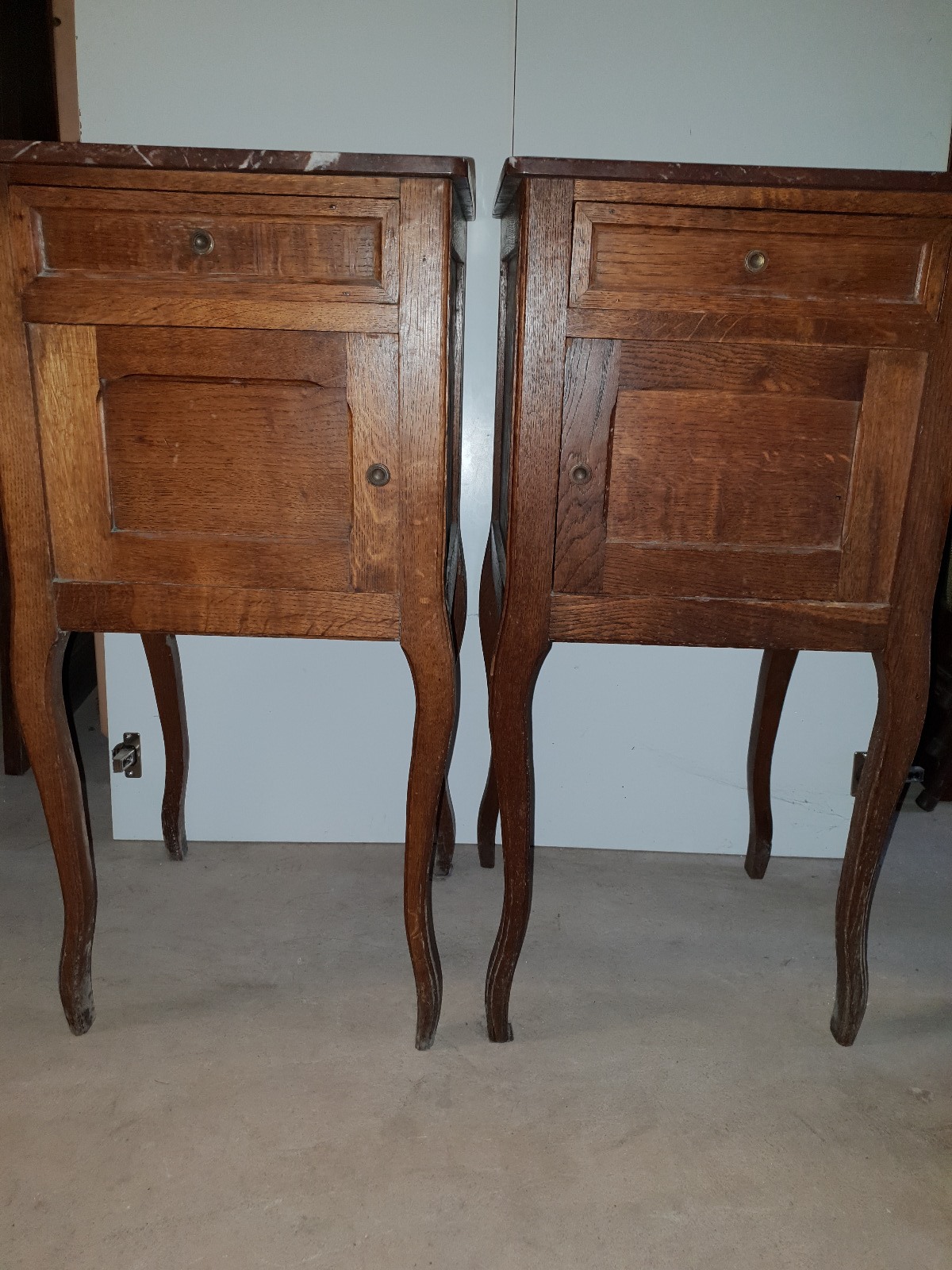 Pair of Bedside Tables in Oak & Marble c.1900