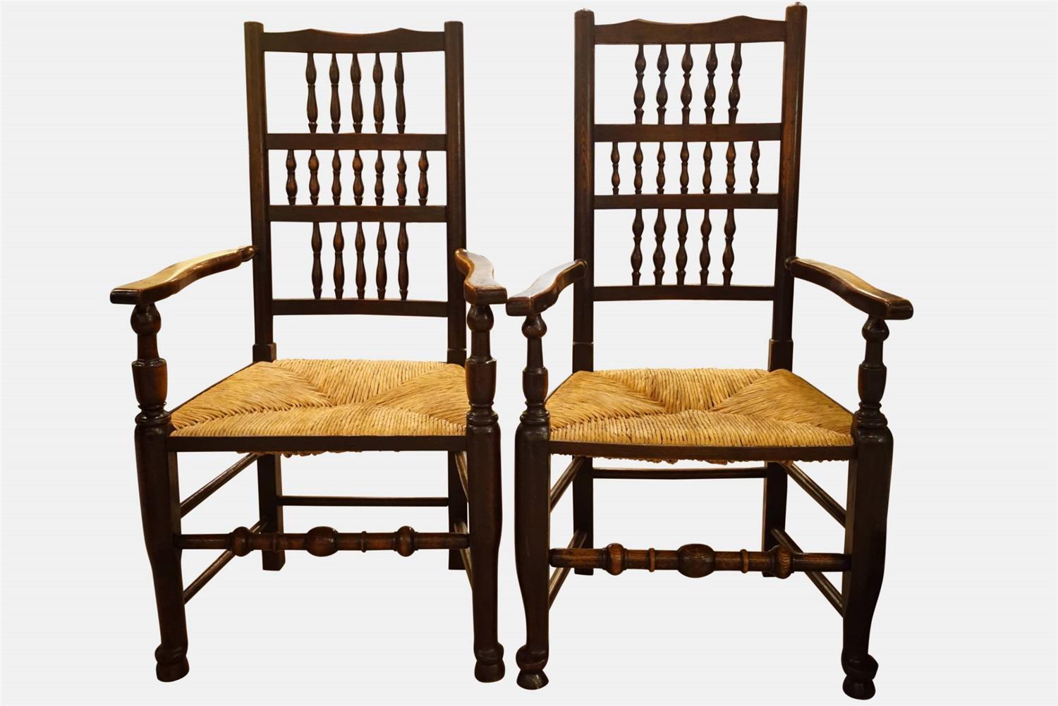 Pair of Beech & Elm Spindle Back Armchairs c.1860 (1 of 1)