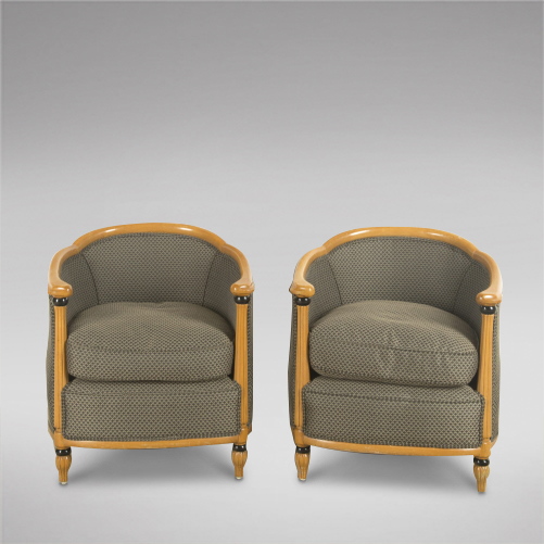 Pair of Beechwood Tub-Shaped Club Armchairs