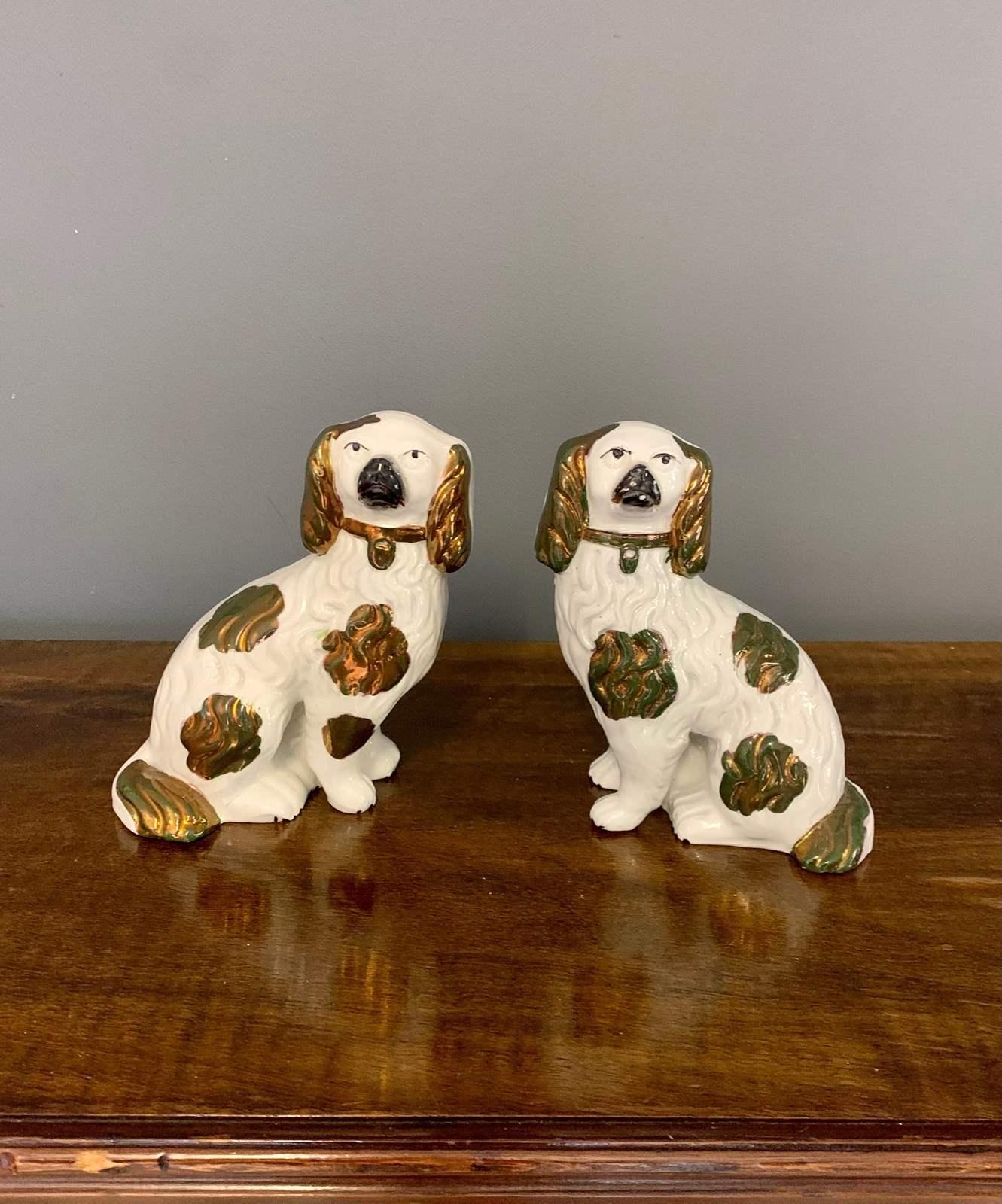 Pair of Beswick Style Mantle Dogs with Bronze Detail