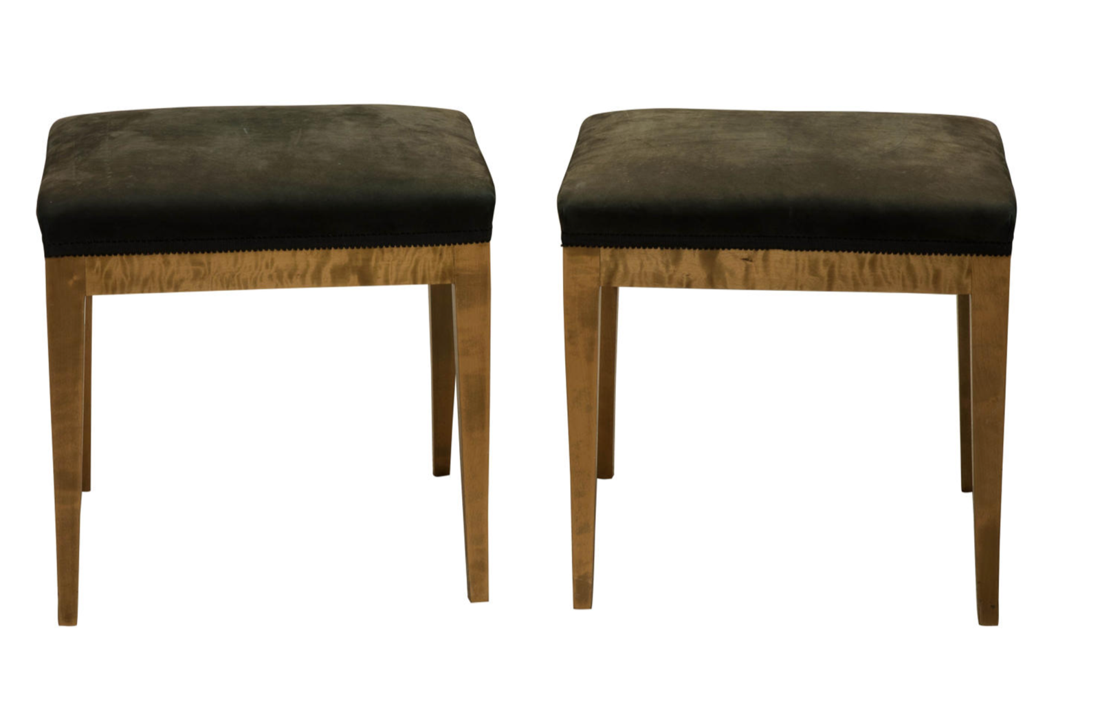 Pair of Biedermeier Karelian Birch Stools C.1900
