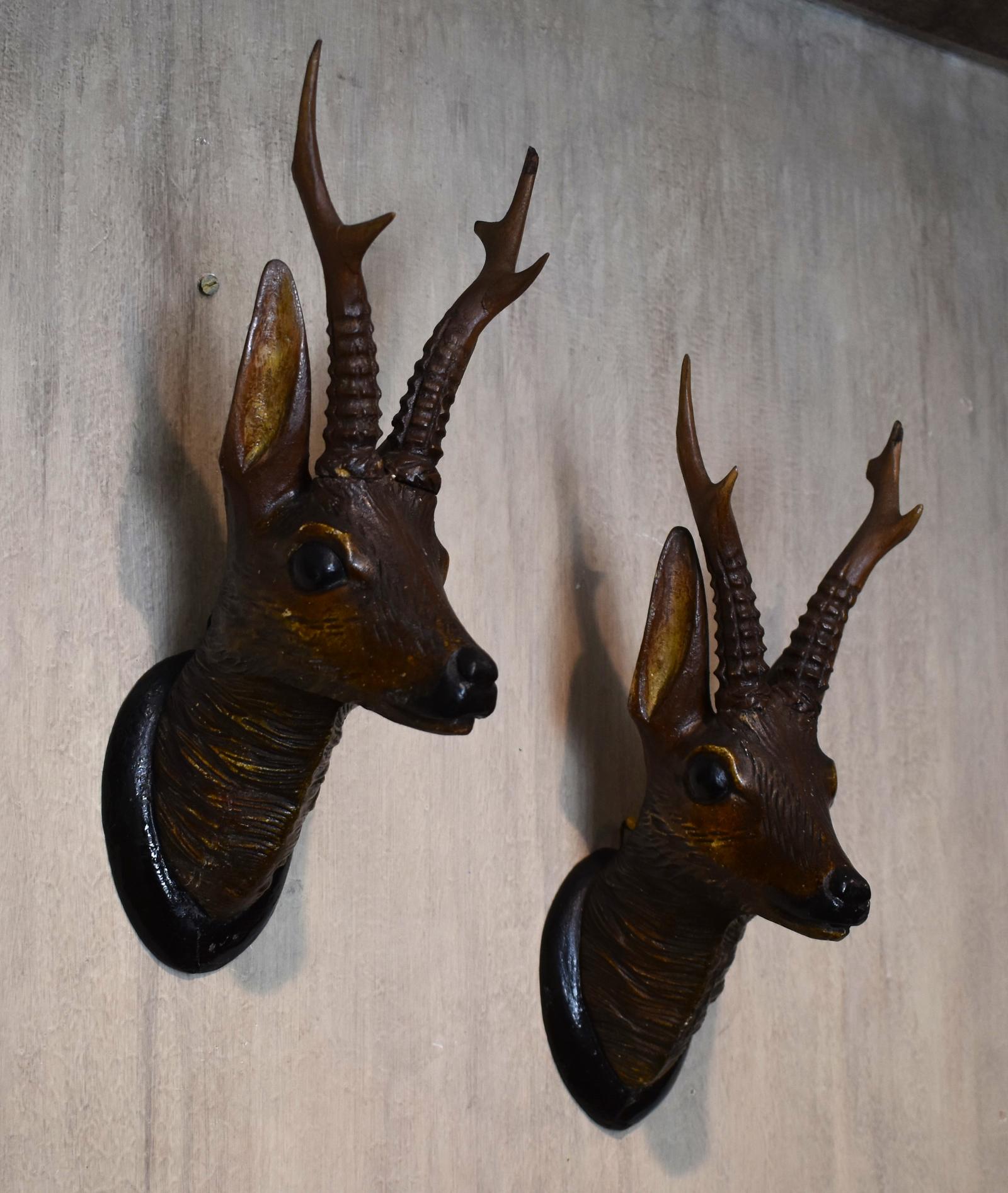 Pair of Black Forest Carved Wood Deer Heads (1 of 8)