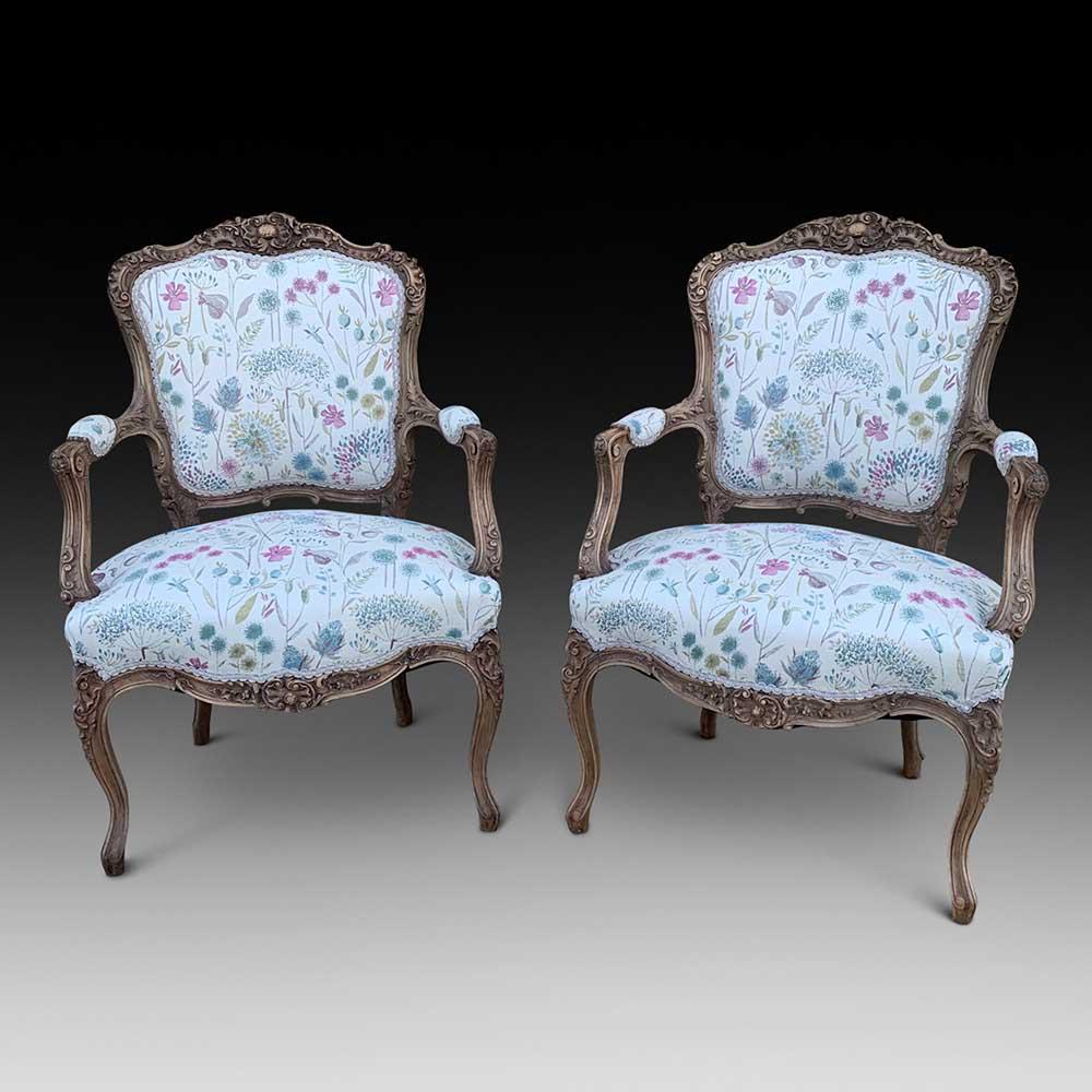 Pair of Bleached Walnut Armchairs ca. 1840-1860