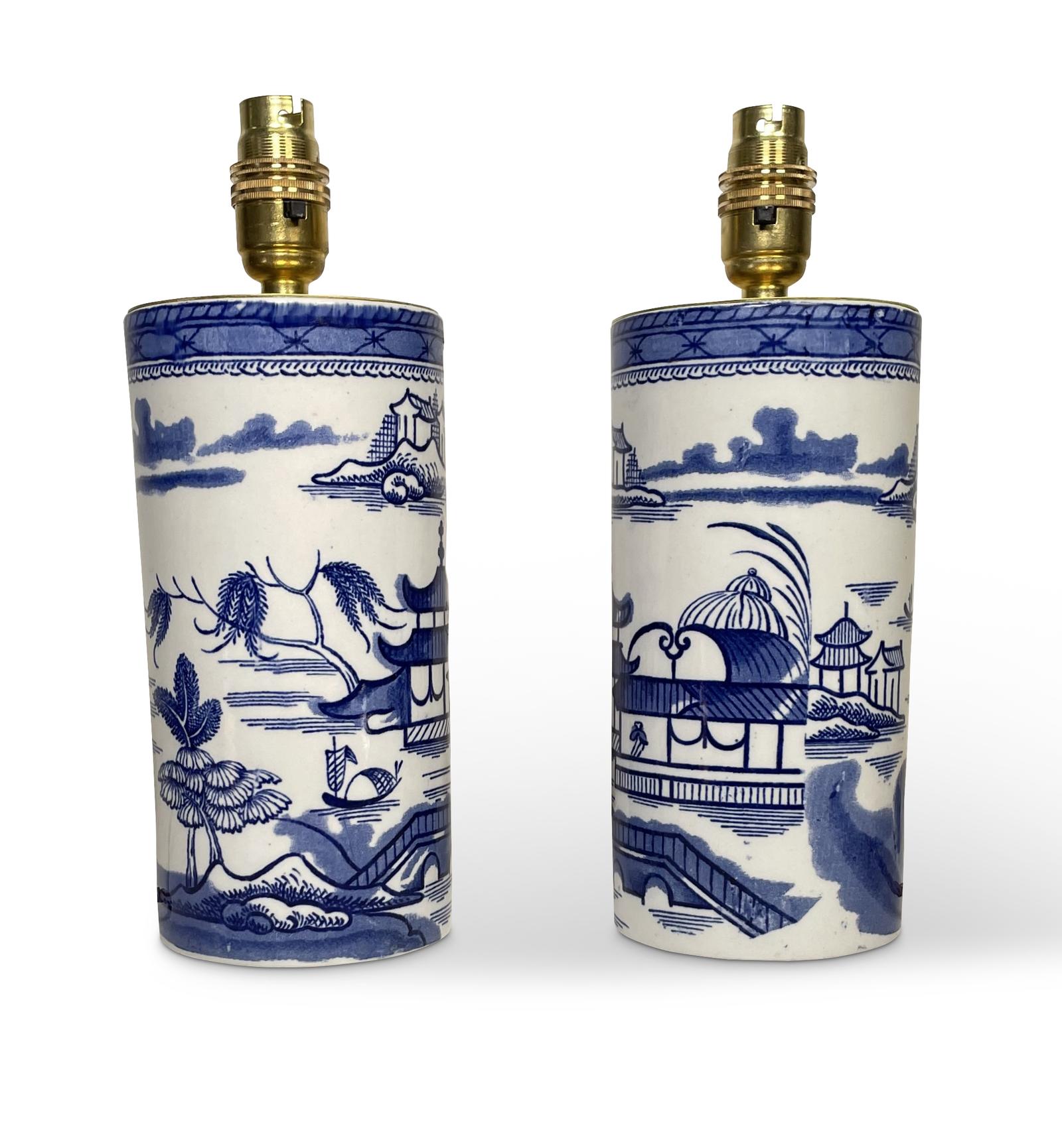 Pair of Blue and White Chinese Design Ironstone Vase Lamps