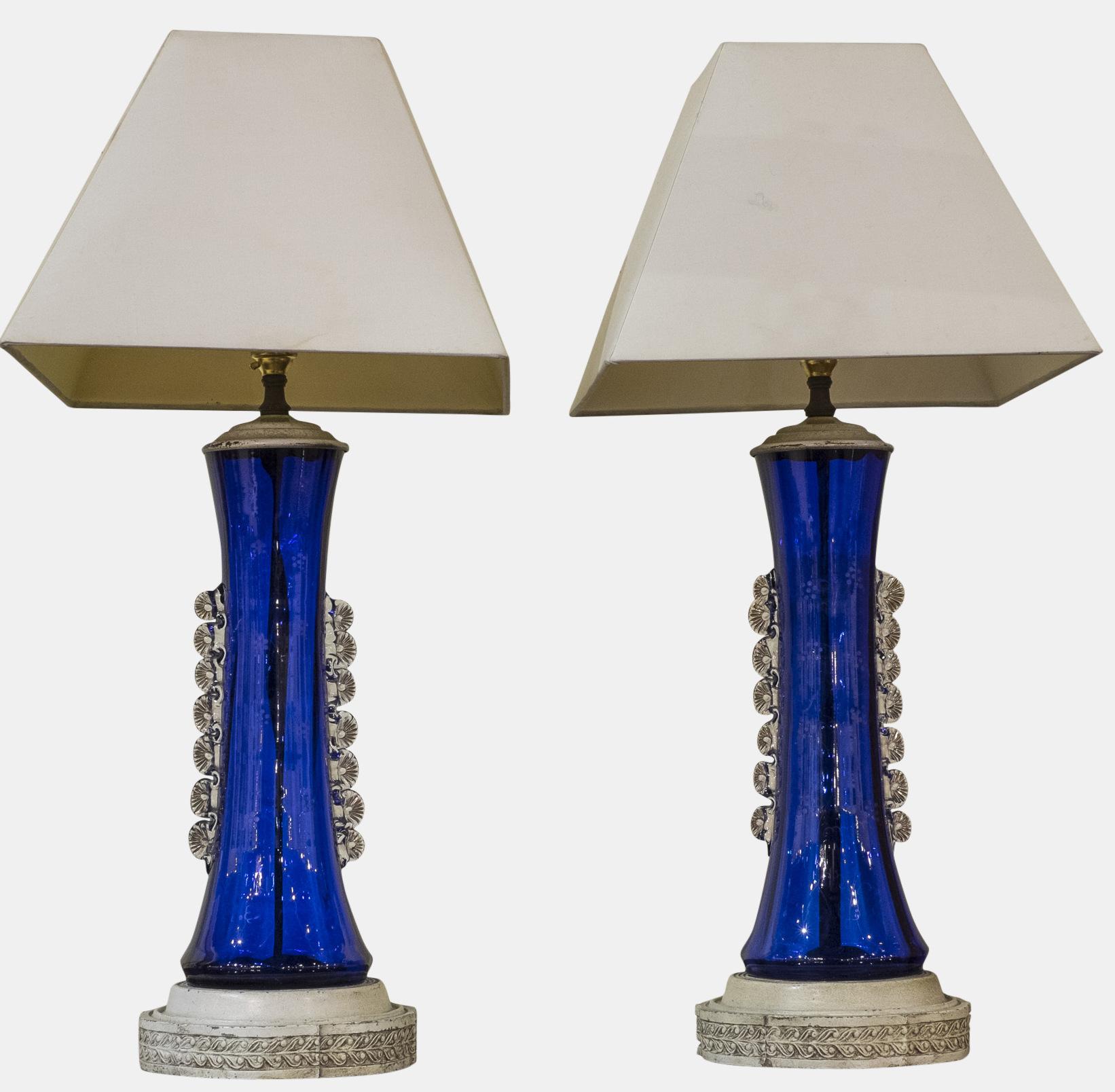 Pair of Blue Glass Lamps