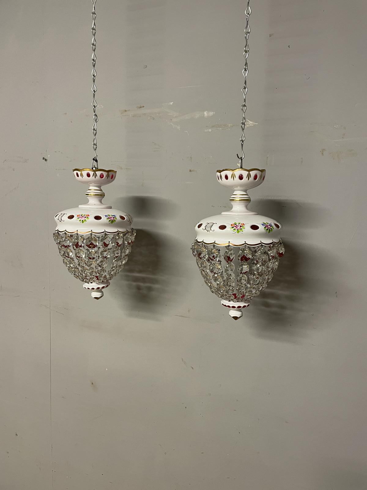 Pair of Bohemian Cut and Overlaid Glass Purse Chandeliers