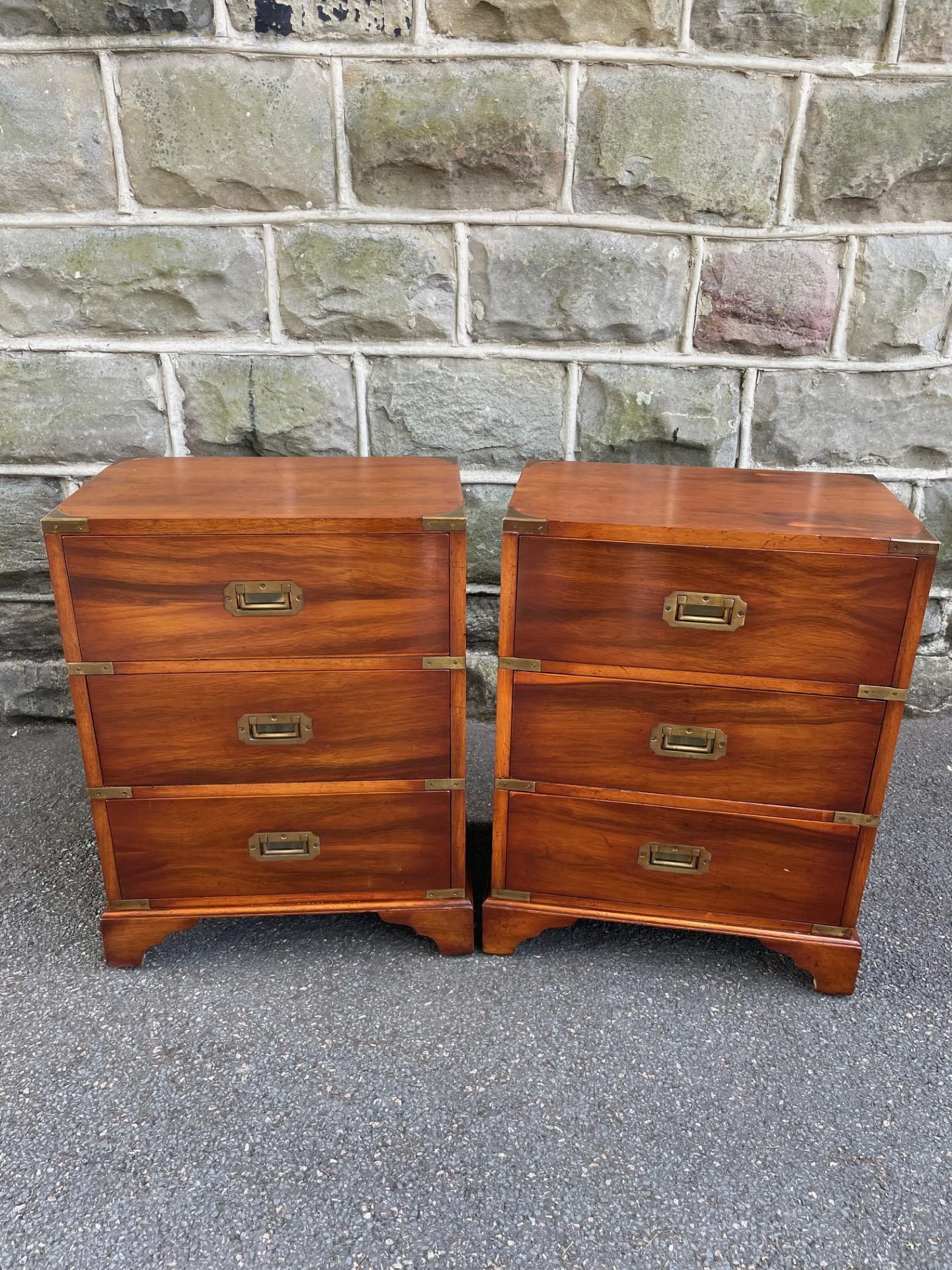 Pair of Brass Bound Military Campaign Bedsides Chests