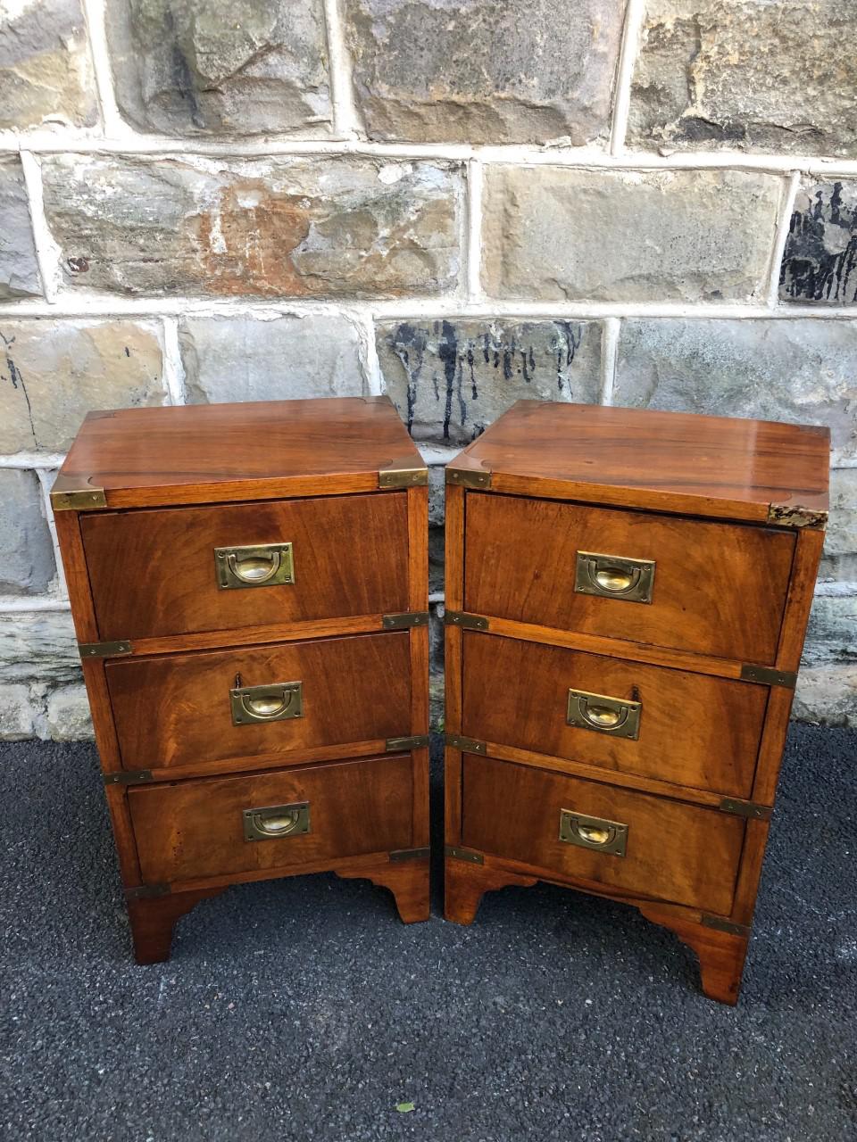 Pair of Brass Bound Walnut Campaign Style Bedside Chests