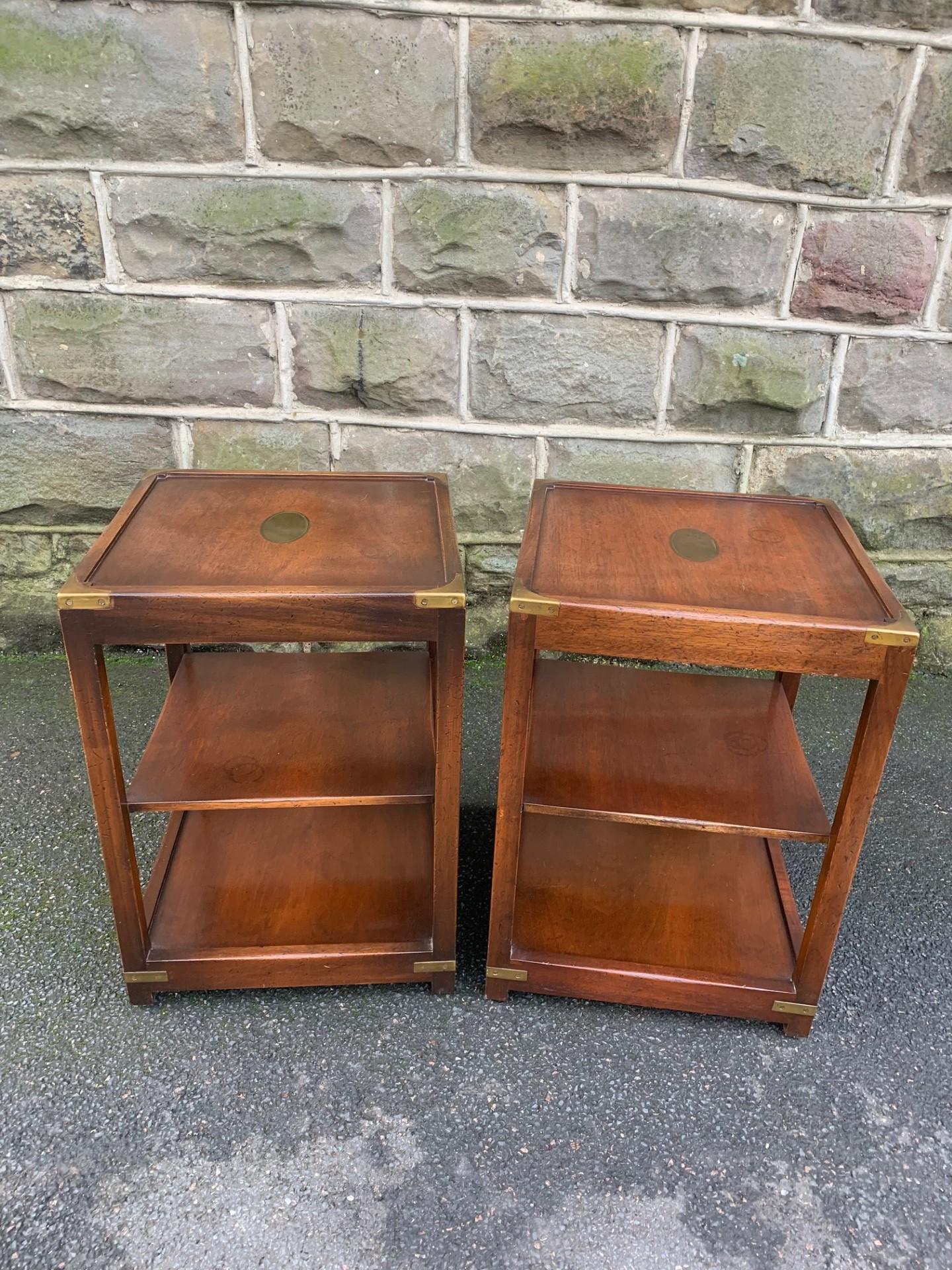 Pair of Brass Bound Walnut Military Campaign Style Bedside Tables