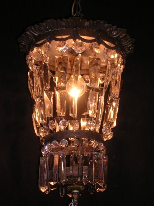Pair of Brass & Crystal Chandeliers Hall Lights Lanterns c.1920