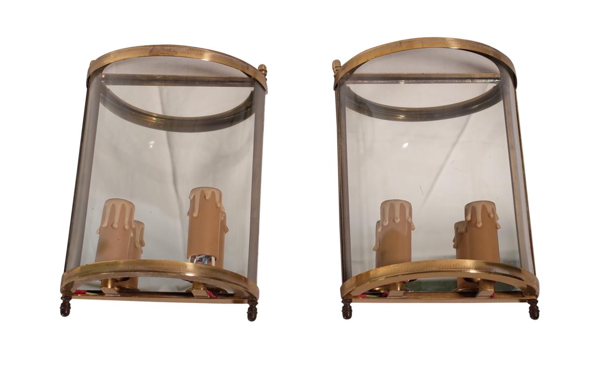 Pair of Brass & Glass Demi-Lune Wall Lanterns