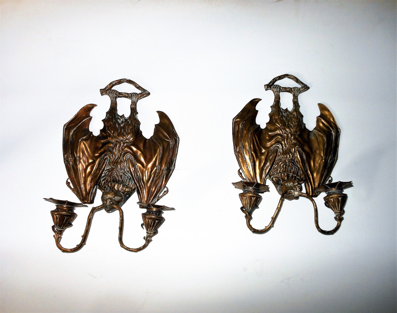 Pair of Brass Hanging Bats Wall Sconces C.1890