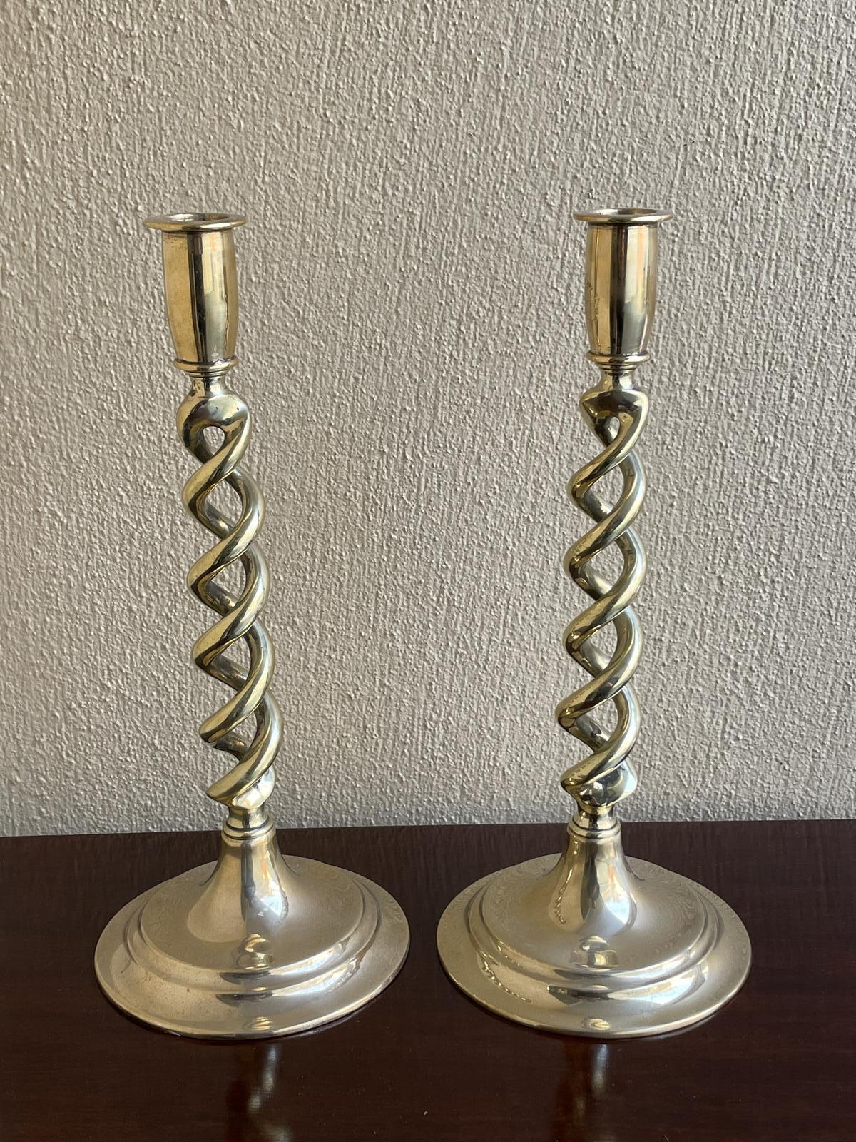 Pair of Brass Open Twist Candlesticks