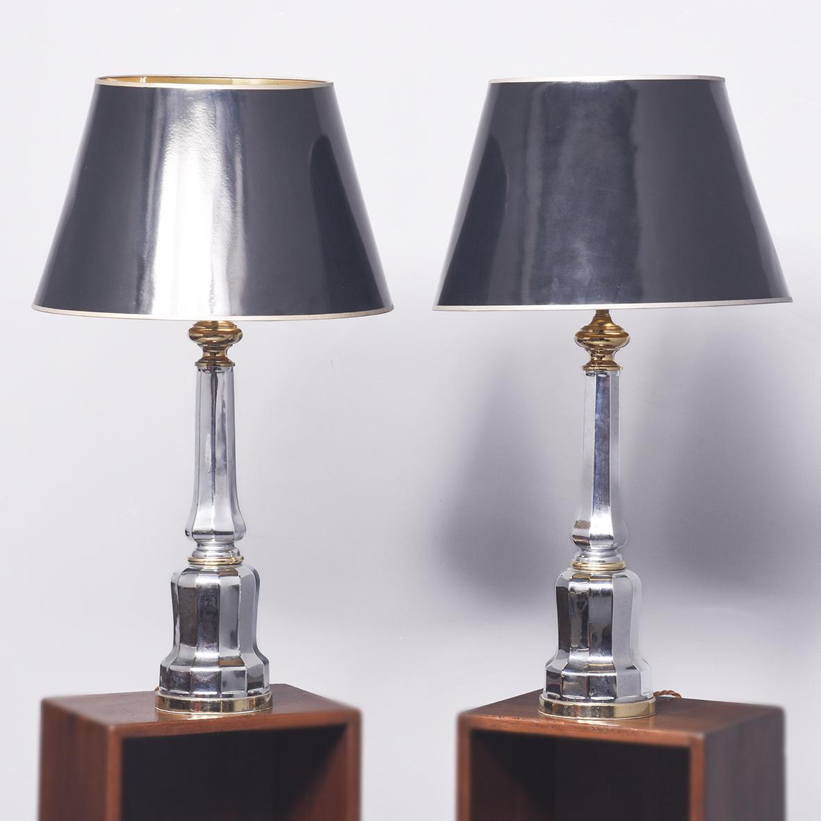 Pair of Brass & Polished Steel Table Lamps (1 of 9)